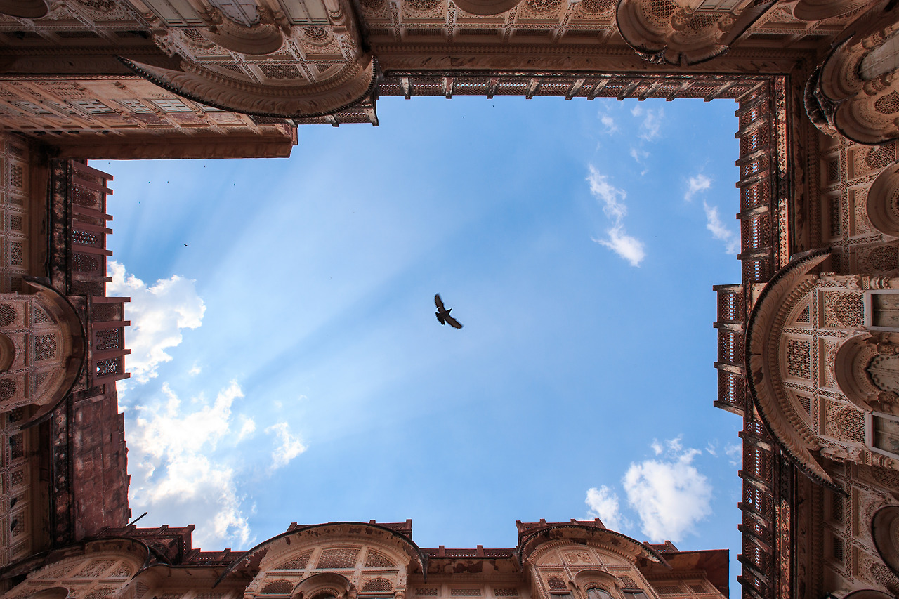 메헤랑가르 성 들어가는 입구에서 프레임 안으로 비둘기가 날아와 준 것은 정말 행운이었습니다.