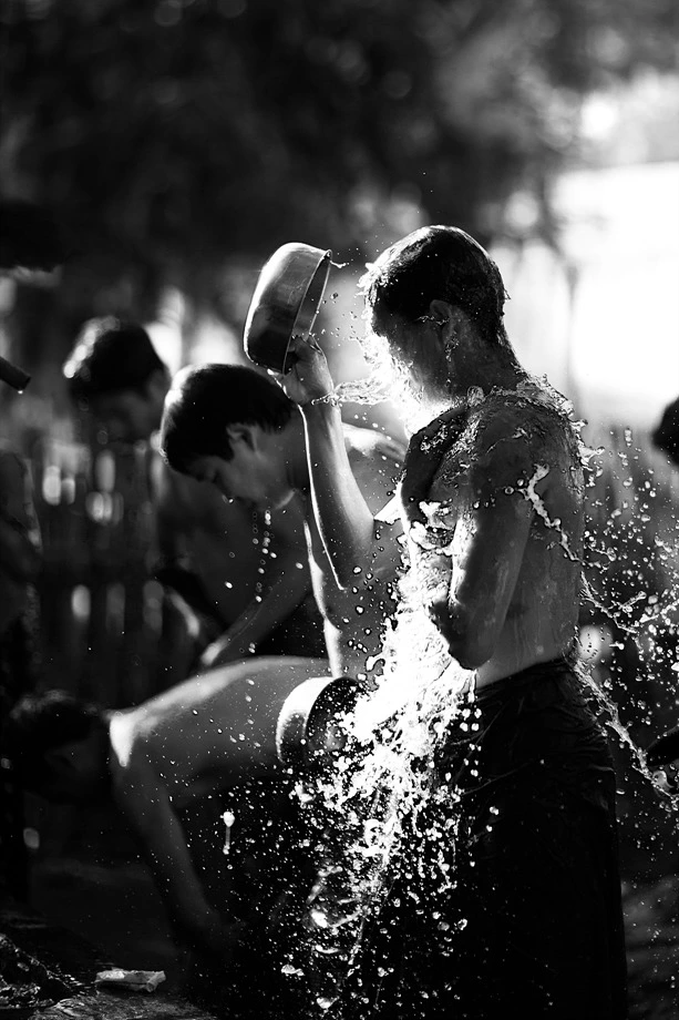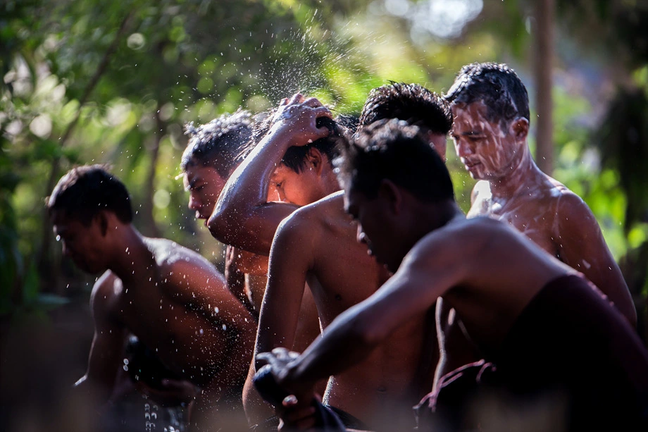 아난다 사원 앞에서 목욕을 하는 미얀마인들도