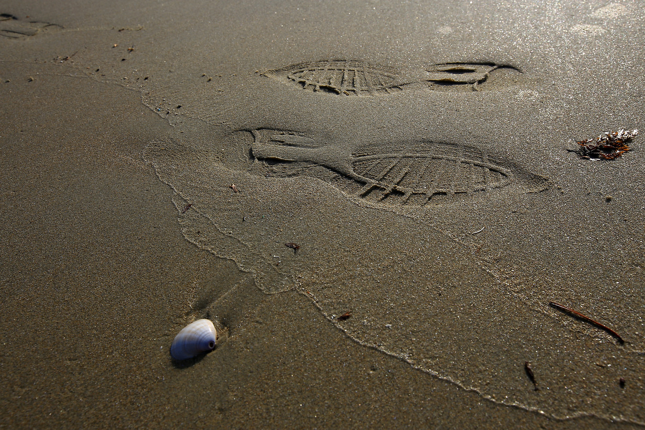갯벌 위에 남아있는 발자국 모습에 잠시 멈췄다. 자세를 엎드리듯 낮추어 원하는 앵글을 만들고 촬영을 했다.