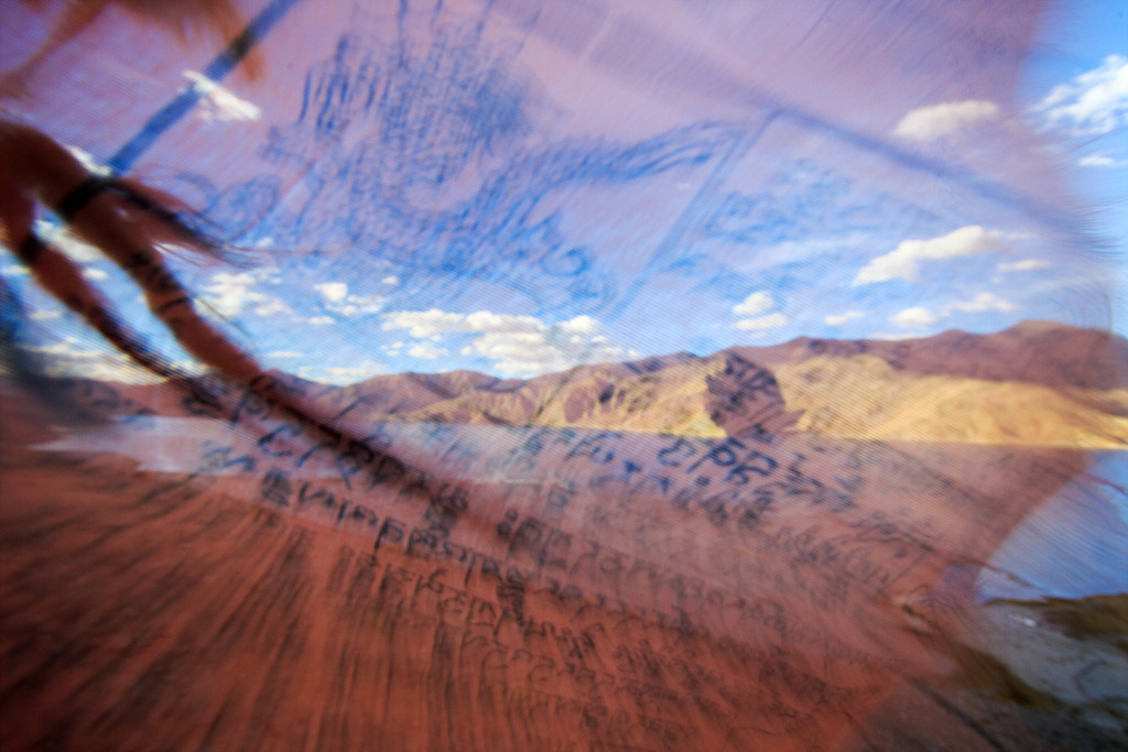 산의 정상에는 곰파가 하나 세워져 있었고 그 주위로 오색 깃발과 큰 깃발 하나가 걸려있었습니다. 깃발에 담긴 이곳 사람들의 염원이 판공초의 바람과 함께 하늘을 향해 휘날렸습니다. 판공초에서 부는 바람과 이곳 사람들이 염원하는 바람 그리고 제 귀를 두드리는 여기 바람소리까지 함께 담고 싶었습니다. 큰 깃발(다르촉)을 앞에 두고 판공초를 배경으로 바람이 카메라에 담길 때까지 계속해서 사진을 찍었습니다.