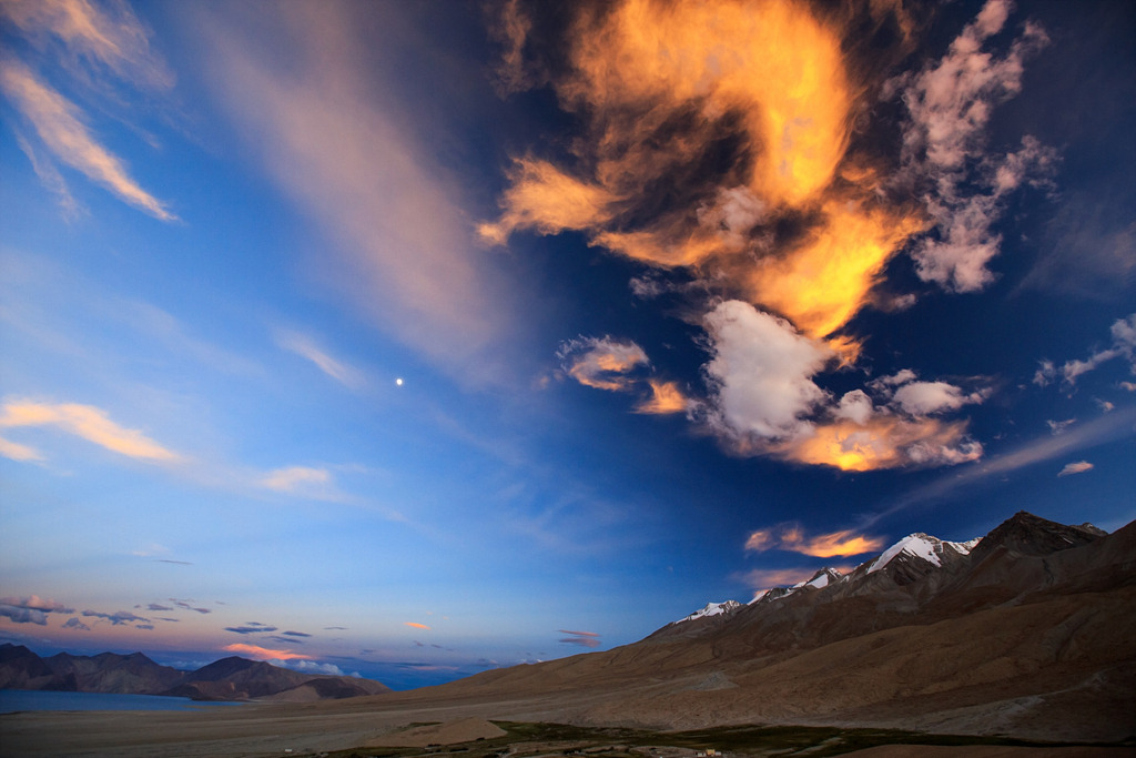 해는 서서히 저물기 시작하였습니다. 판공초의 하늘은 서서히 붉게 타오르기 시작했습니다.