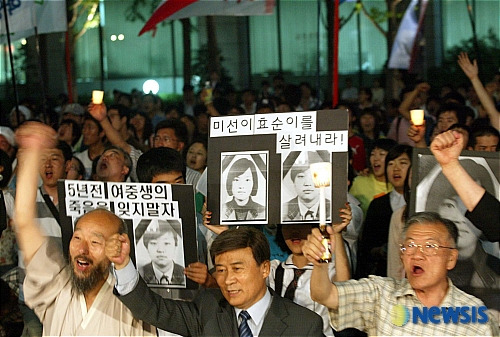 글의 도입부에서 첫 번째로 소개한 내용은 다들 알다시피 미군 장갑차에 한국의 두 여중생이 깔려서 사망한 '미선이 효순이' 사건이다.