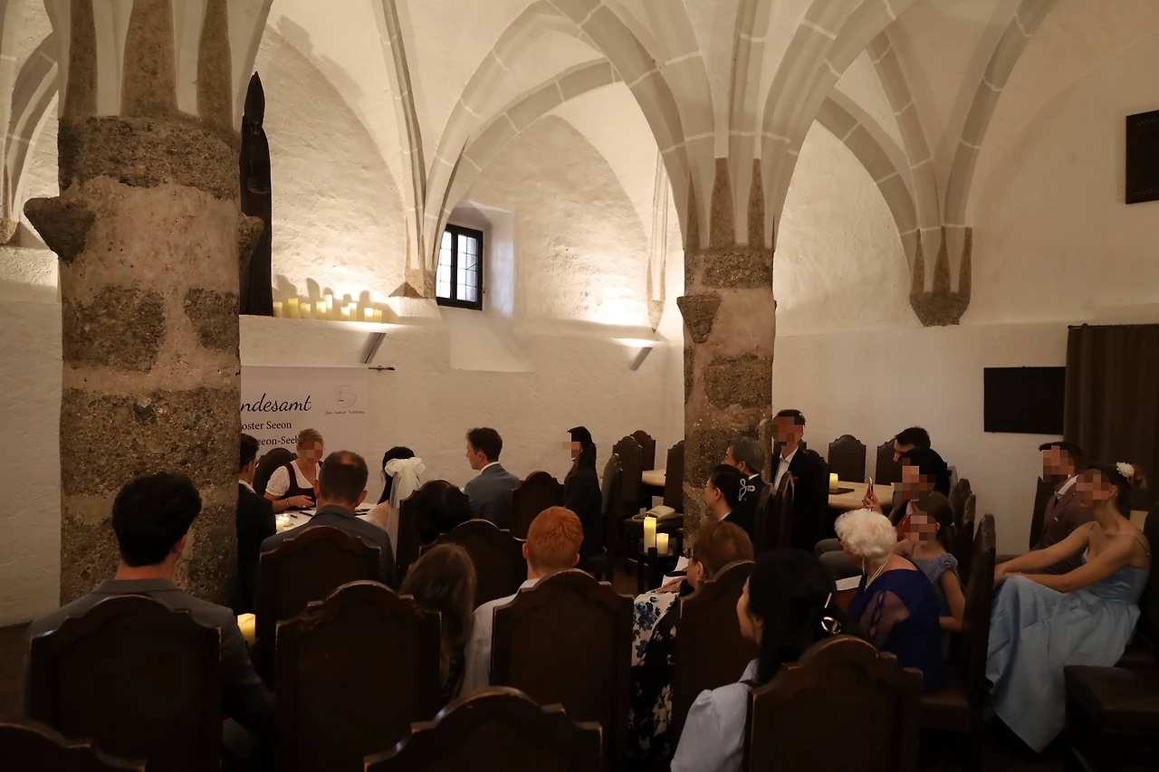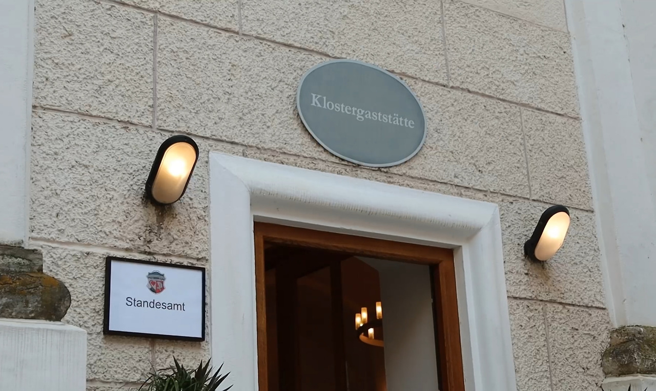여기도 마찬가지예요. 제온 수도원은 트라운로이트 슈탄데스암트가 공식적으로 지정한 법적 결혼식 장소입니다. 원하는 날짜에 사용을 신청하면 여기서 공식적인 결혼식을 진행할 수 있는 거죠. 실제로 수도원 내부를 돌아다니다 보니 '슈탄데스암트(Standesamt)'라고 쓰인 입구도 찾아볼 수 있었답니다.