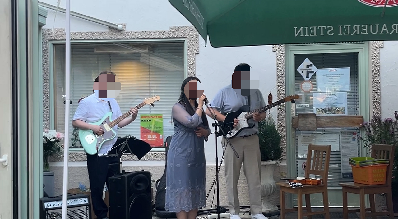 그런 모습을 제외하면 한국에서 흔히 볼 수 있는 기독교식 혼인 예배와 크게 다르지 않았습니다. 중간에 신랑을 향한 신부의(!) 세레나데도 있었고, 부모님을 비롯한 어른들의 덕담도 한 마디씩 들었고요.