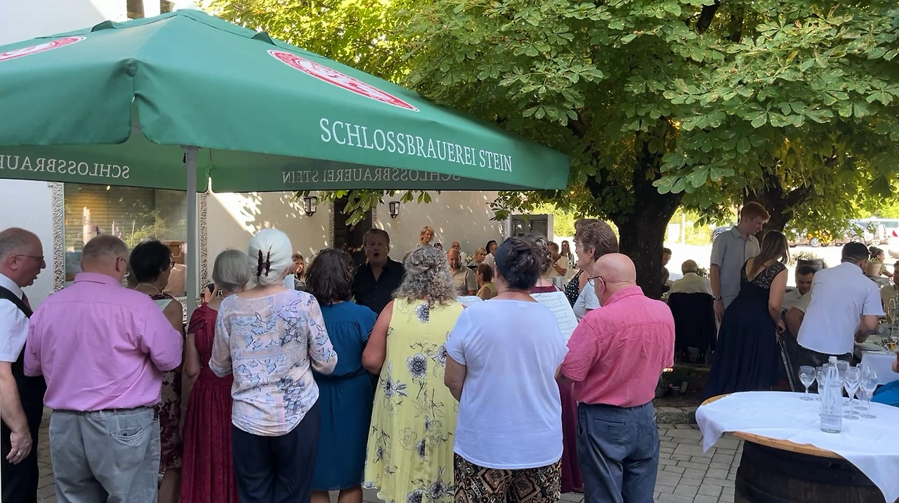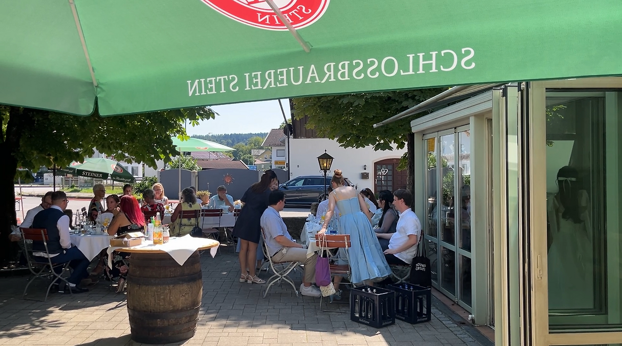 그런데 놀랍게도, 이 날의 결혼식은 아직도 끝나지 않았습니다. 결혼식 참석자들을 위한 애프터 파티가 준비돼 있었기 때문이죠. 두 사람이 살고 있는 '슈타인 안 데어 트라운'에는 지역 특산 맥주를 생산하는 양조장이 하나 있는데, 파티를 위해 그 양조장에서 운영하는 레스토랑을 빌렸더라고요.