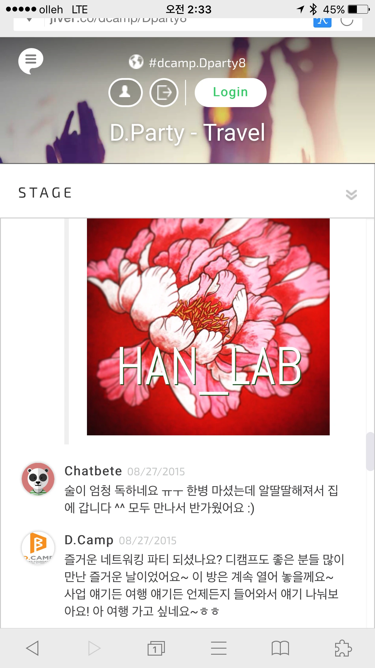 이 D.PARTY라는 행사의 인기 때문인건지 아니면 여행 스타트업들의 모임이라는 주제가 워낙 흔치 않은 기회이기도 하고 이전에는 거의 없었던 것이기 때문인건지 모르겠으나 일단 와보길 잘했다라는 생각이 들었습니다.