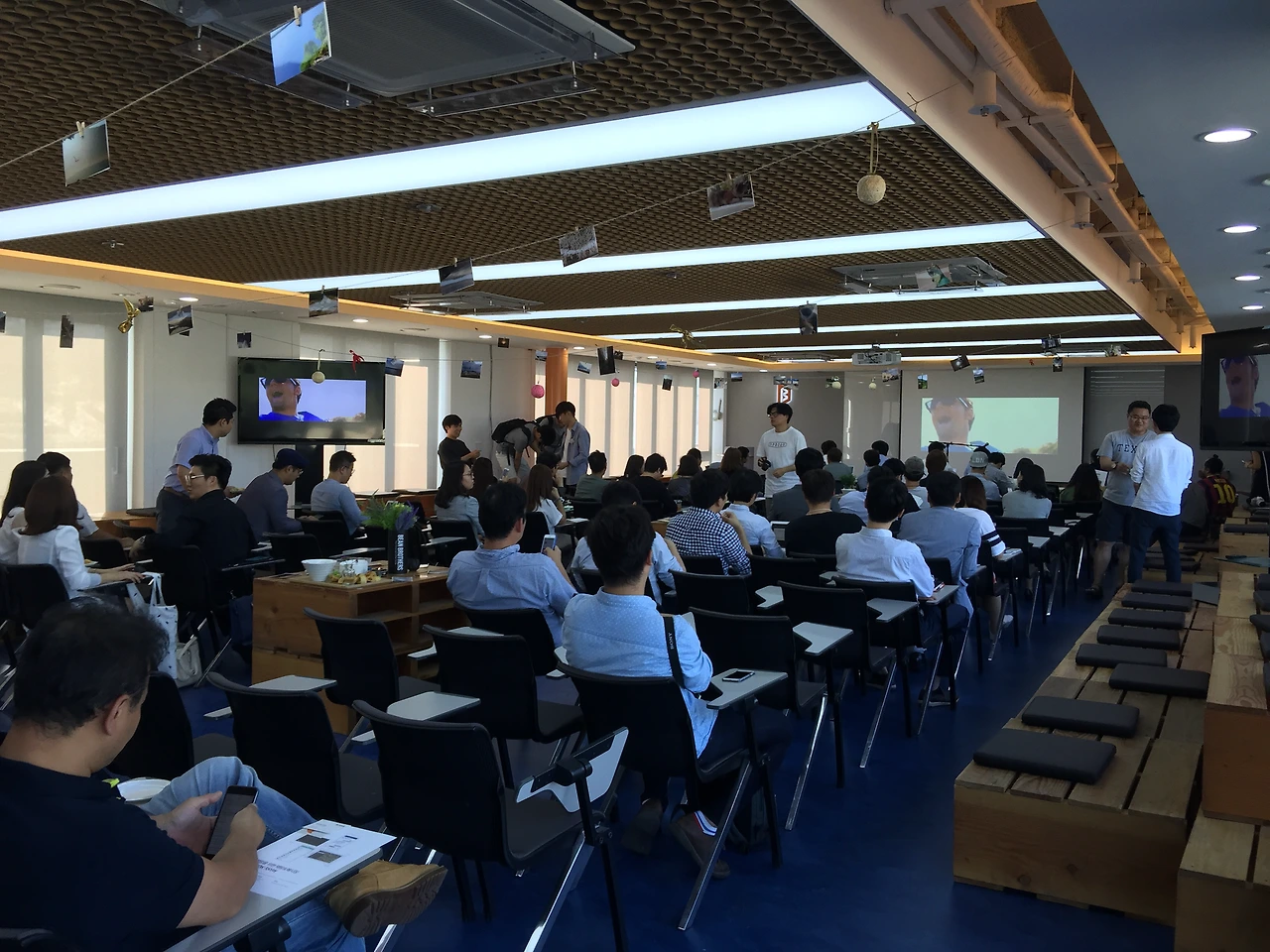 스타트업들을 위한 다양한 co-working space가 있다고 합니다. 행사는 6층에 다목적홀이라는 세미나 공간에서 진행되었습니다.