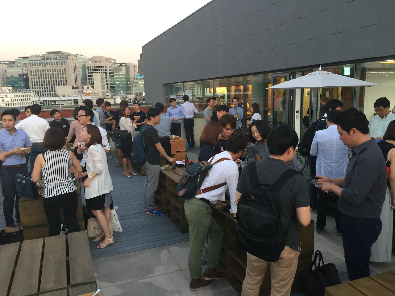 발표가 끝난후 야외 테라스에서 자유롭게 식사하며 서로를 소개하는 네트워킹 시간의 모습입니다. 각자 관심있는 분야에서 오신 분들께 적극적으로 먼저 다가가서 소개하며 인사하는 분위기더군요.