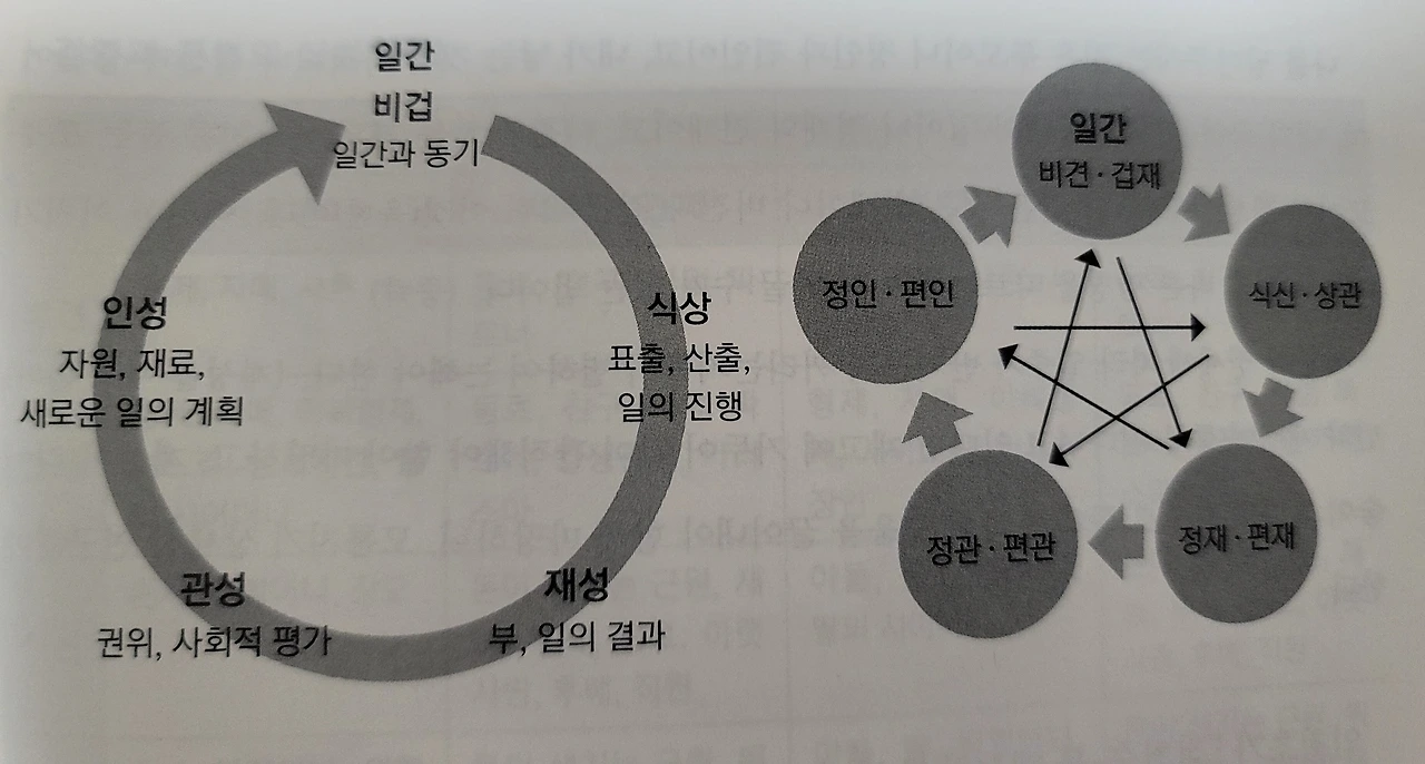 * 오행, 생과 극의 원리 (출처: 신정원의 명리학 CLASS, 동학사)B의 사주를 보면 기유 일주에 식상(식신, 상관)이 많은 구조다. 이런 경우 타인에게 베풀기를 좋아하고, 언변이 뛰어나며 표현력이 좋다. 특히 말에 힘이 있어 어떤 상황에도 흔들리지 않는 굳건함이 있다. 가령 논쟁 상황에도 격조 있는 어투를 유지해 상대방을 놀라게 한다.