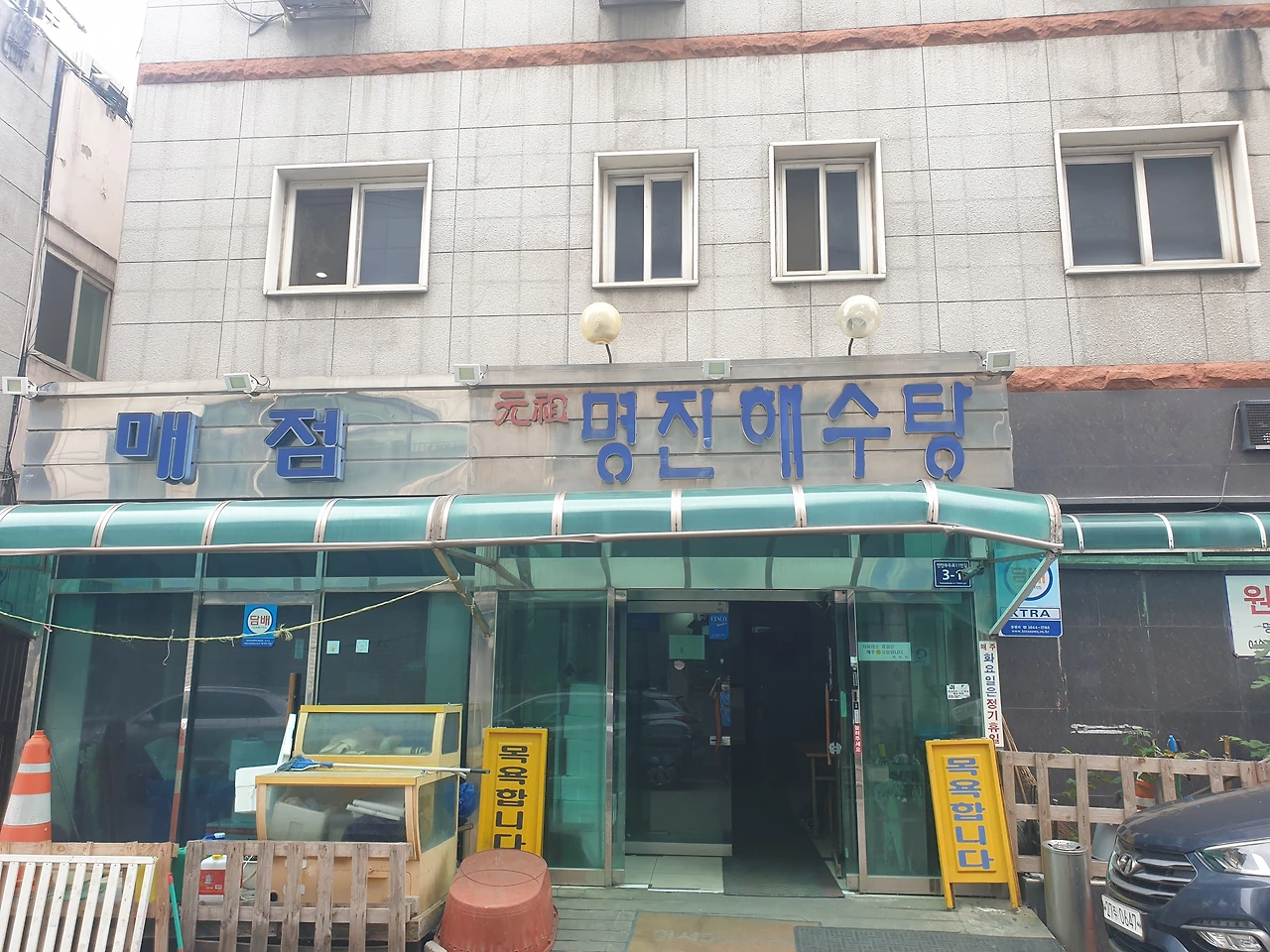외관은 옛날 동네 목욕탕과 같고 화려한 사우나와 같은 멋진 건물은 아니지만 왠지 정감이 가는 모습이다. 입구 옆에는 가끔씩 주인아저씨가 잡아온 생선을 아주 싼값에 판매를 하기도 한다.