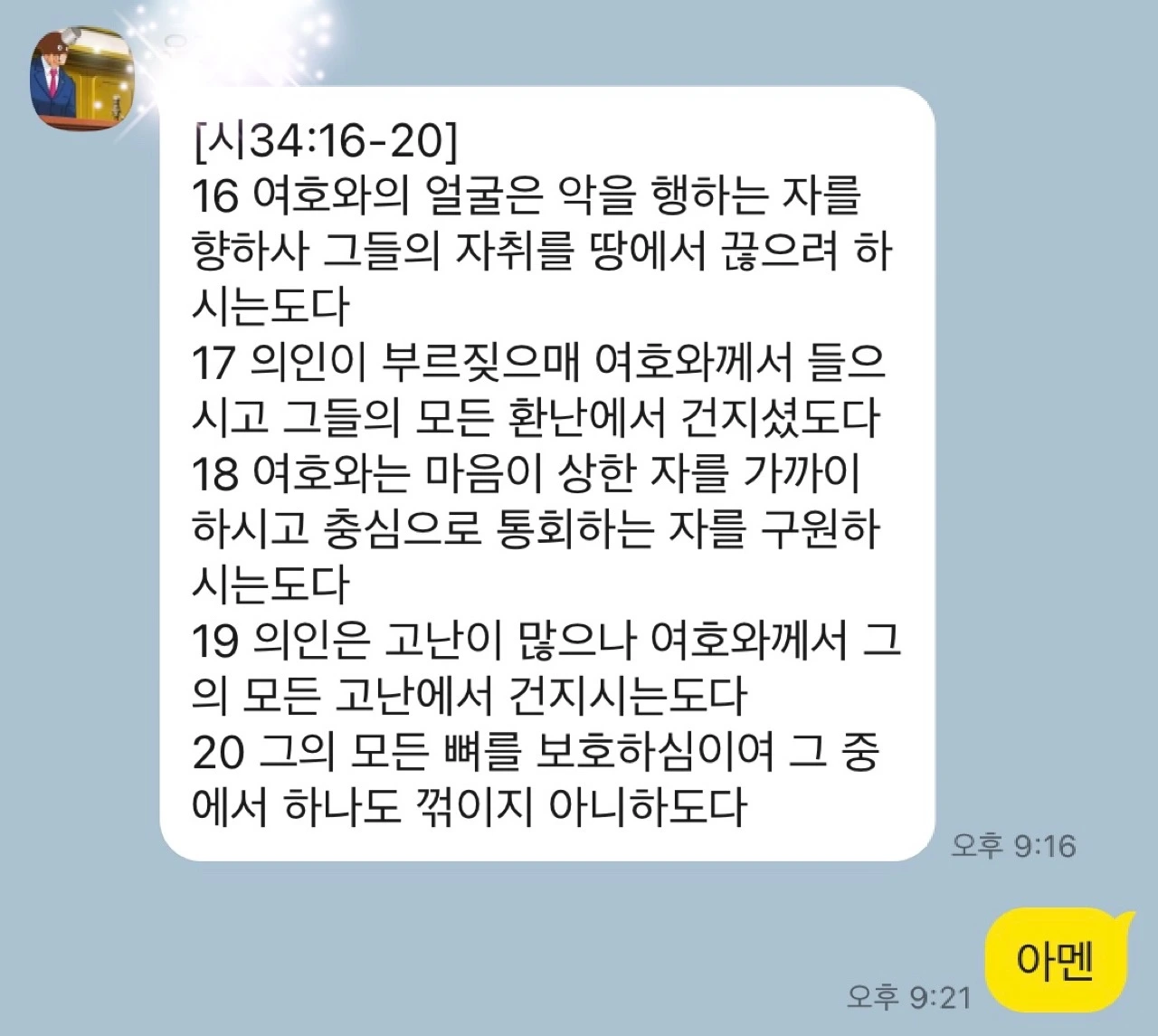 주일 면회시간 때문에 병원 교회 예배에 한 번 더 갔을 때 전도사님이 나를 보더니 마치 스파이에게 암호를 묻듯