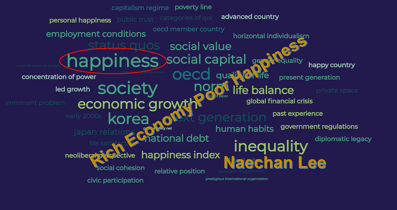 그런데 잘 살펴보시면 일전 필자의 저서의 프롤로그의 워드 클라우드의 핵심어는 이 표지의 단어를 포함하고 있습니다. 제가 책자에서 고민한 것은 이 같은 개념들을 통해 우리사회의 행복을 위한 업그레이드를 필요한 것이 무엇인가였던거죠.