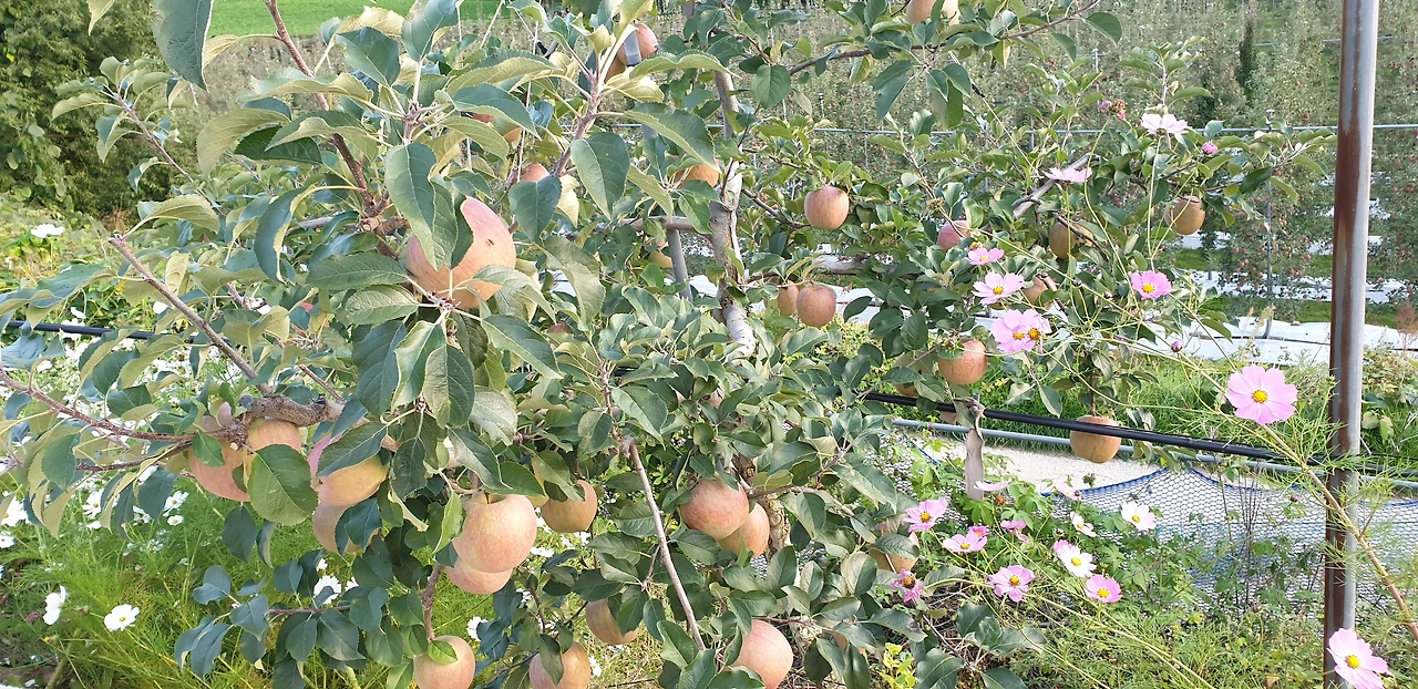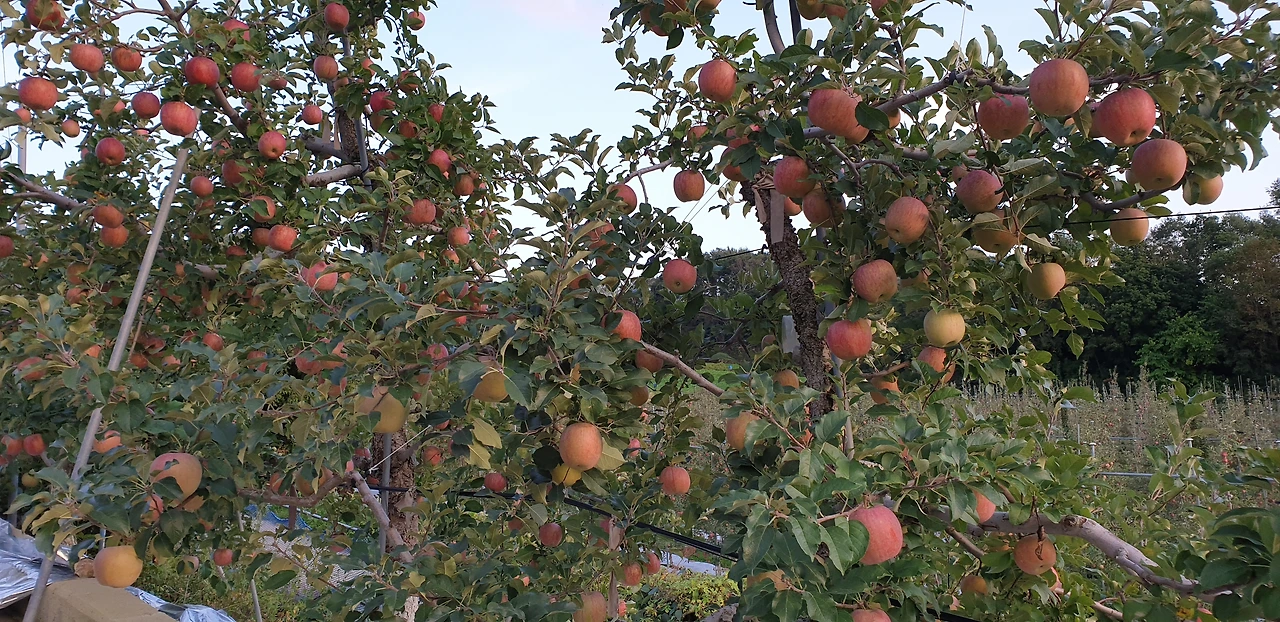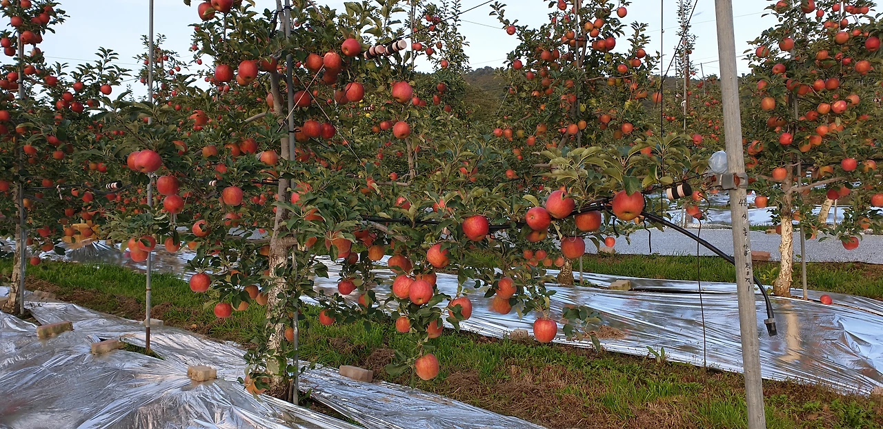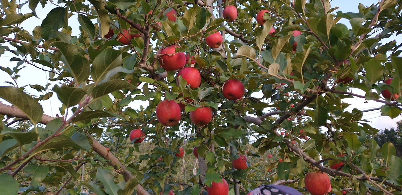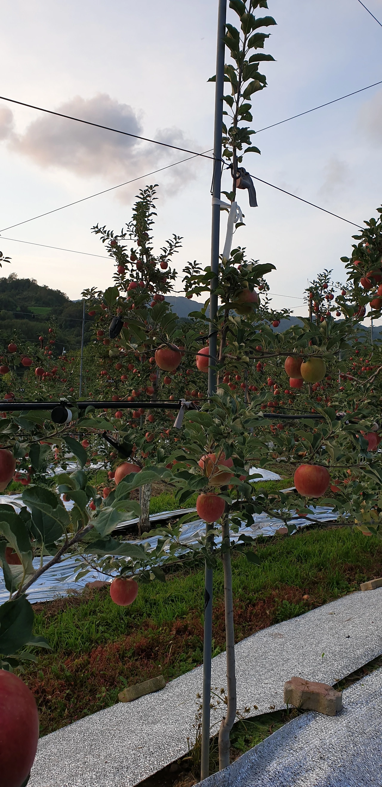 키로에 5천원, 빨갛게 익은 사과를 따서 현장에서 바로 먹어본다.