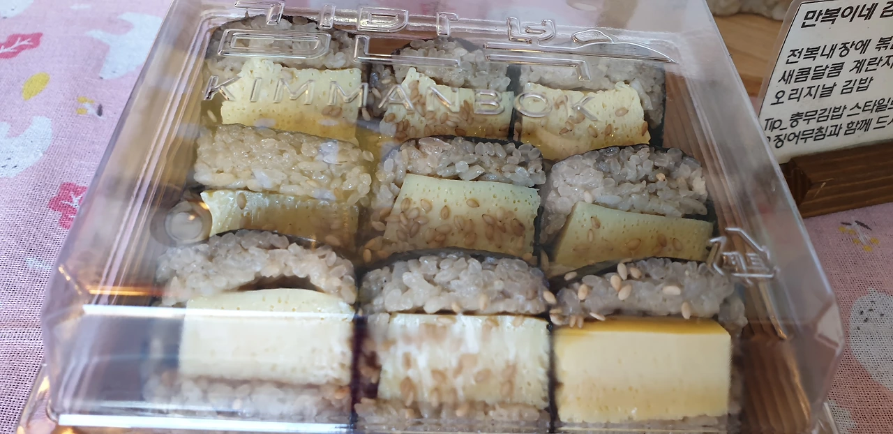 김00김밥도 줄서지않고 주문해서 길거리에서 시식해본다.