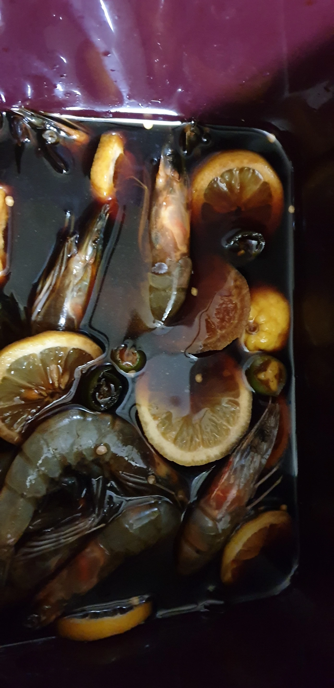 후배와 함께 간신히 만든 새우장.두 번은 못하겠다