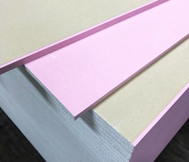 벽닌로 주변이나 불의 접근이 용이한 곳에 사용되는 방화석고보드 (분홍색)