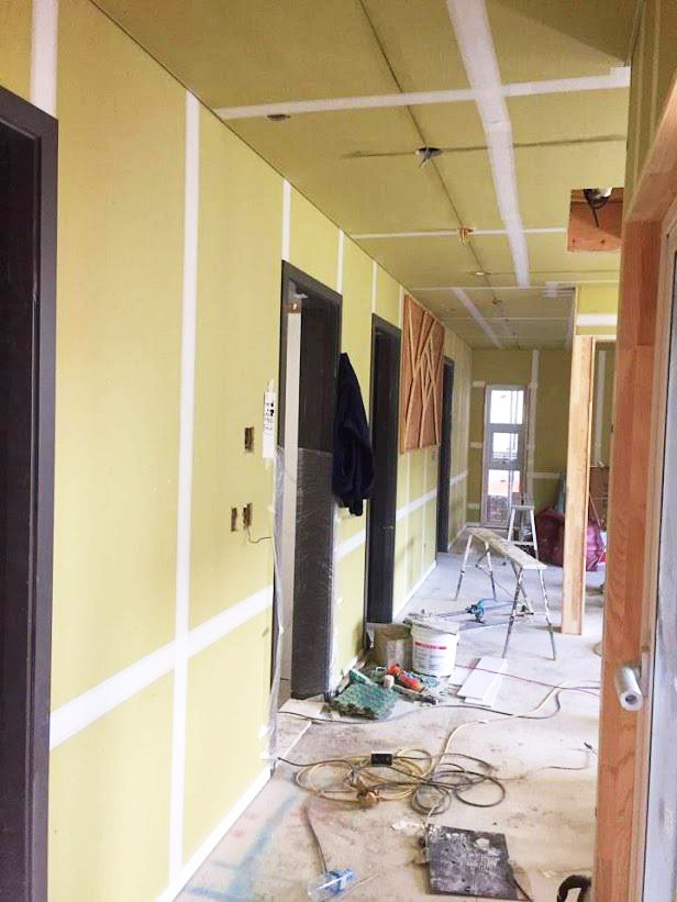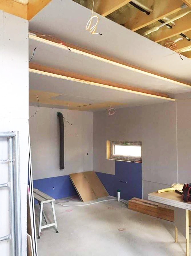 화장실이나 현관, 주방 같이 습기와 곰팡이 서식이 우려되는 곳에는 (청색)의 방수 석고보드로 시공