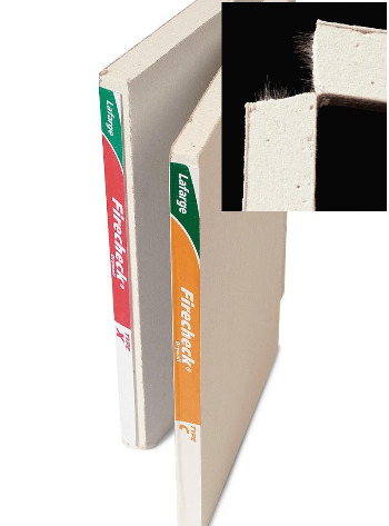 석고보드의 내화성이란 건물이 화재에 노출되더라도 구조적 안정성을 유지하여 사람이 일시적인으로 대피할 수 있는 공간과 탈출 시간을 확보하기 위해 불에 대한 저항력을 높인 것, 모든 석고보드는 어느 정도의 내화성이 있지만 Type X, Type C 석고보드는 불연성 유리 섬유를 보강하여 내화성을 향상 시켰다. Type X 벽체용으로 Type C 천장용으로 사용되고 있다.