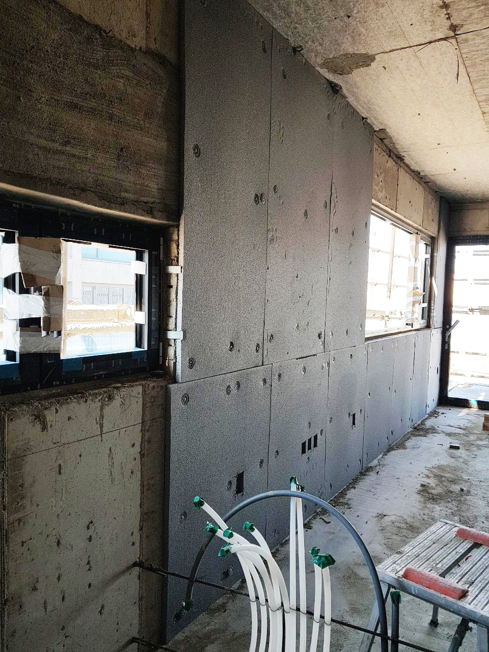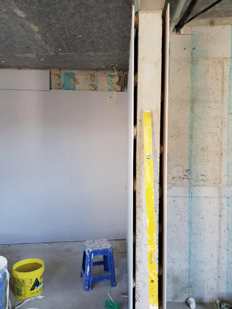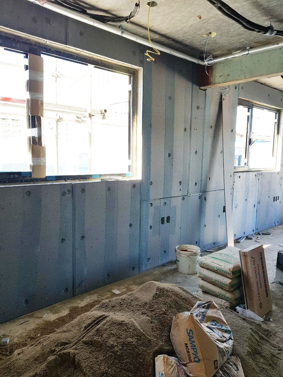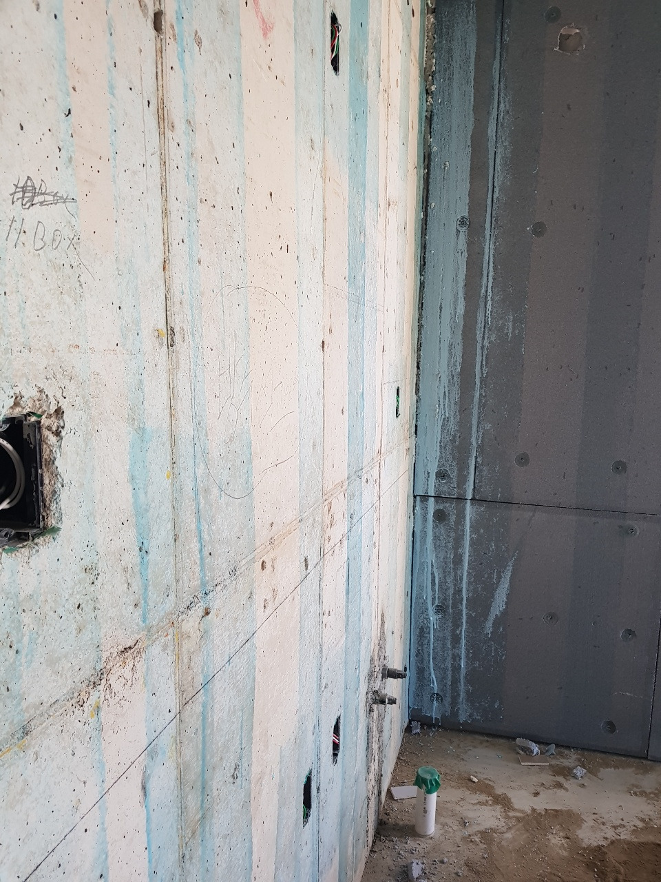콘크리트로 이뤄진 벽을 작업하는 방식은 두 가지로 구분할 수 있다. 그 처음은 콘크리트 벽에 석고보드를 직접 부착하는 방식과 나무로 틀을 짜 부착하는 방식이다. 이 공정들은 콘크리트 벽면의 고른 정도가 불규칙해 석고보드를 활용해 면을 고르게 맞추기 위한 작업들로 과거에는 미장(시멘트나 석고를 물에 개어 벽면을 고르게 하는 작업)으로 마무리하였다.