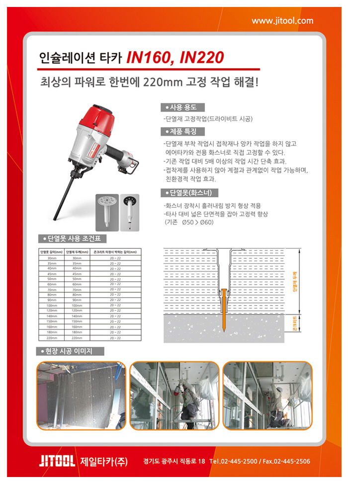 IN160, IN220 같이 타카의 넘버링은 사용되는 못의 최대치 길이를 의미한다.