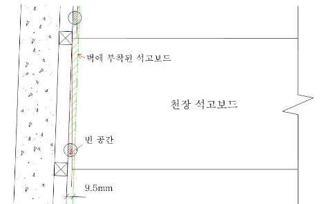 현장에서 경우의 수는 항상 존재하기 마련이다. 벽을 기준으로 천장 석고보드를 부착시 벽과 천장이 만나는이음부에 빈 공간이 발생할 수 있는데 그 빈 공간은 벽에 부착되는 석고보드의 두께(최소 9.5mm)로 가려져 크게 신경 쓰지 않아도 된다.
