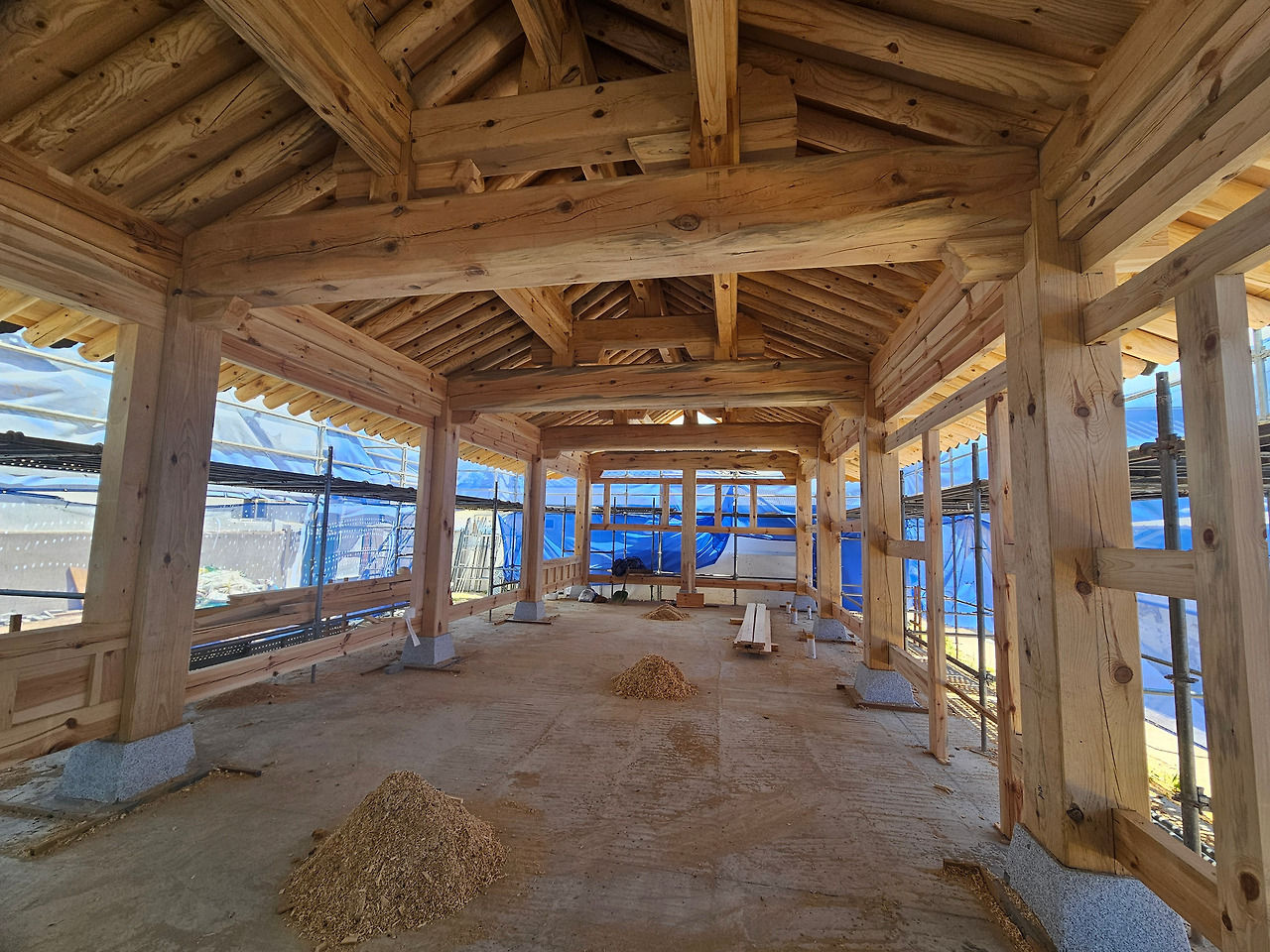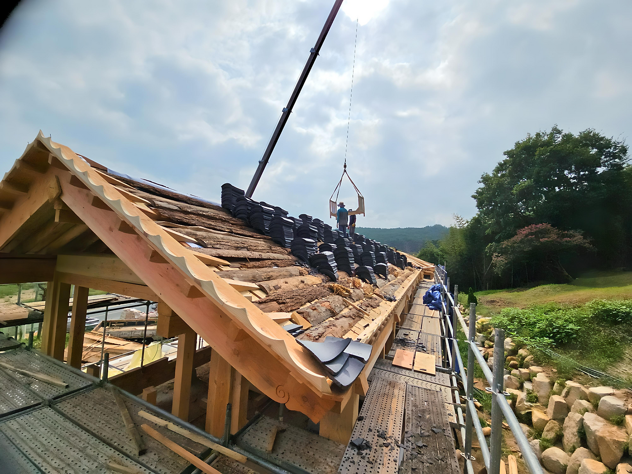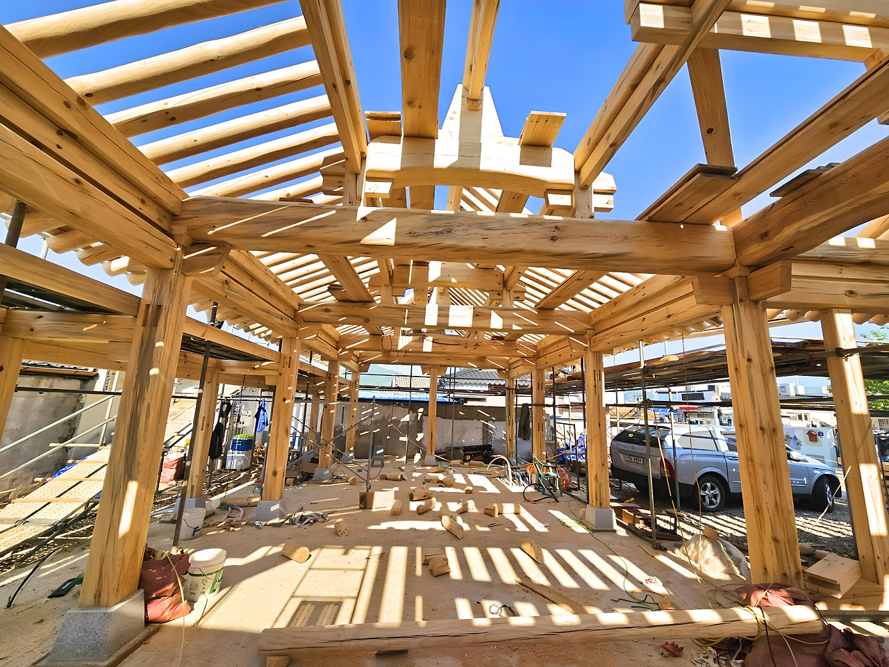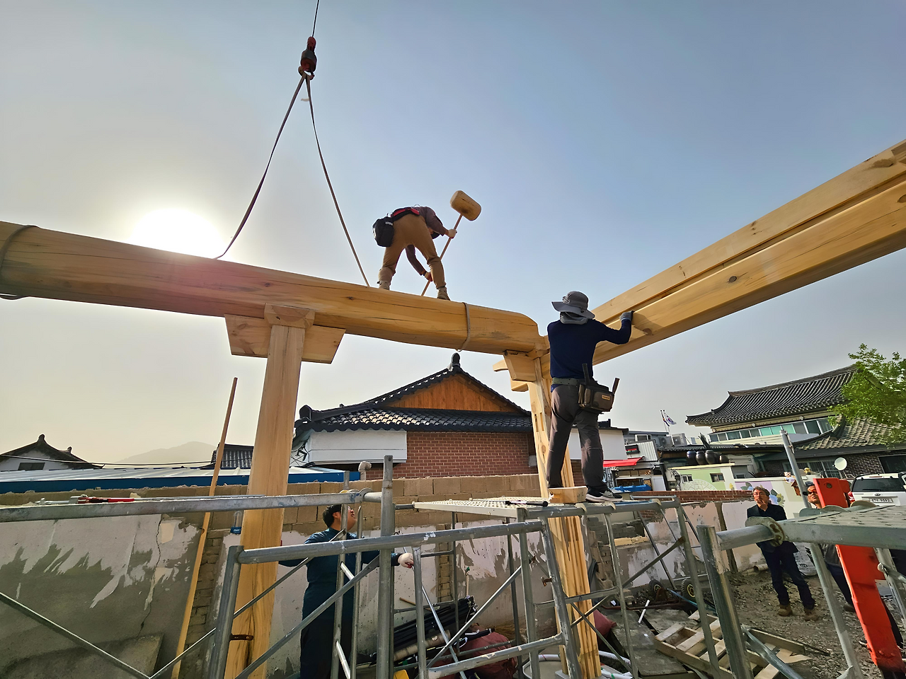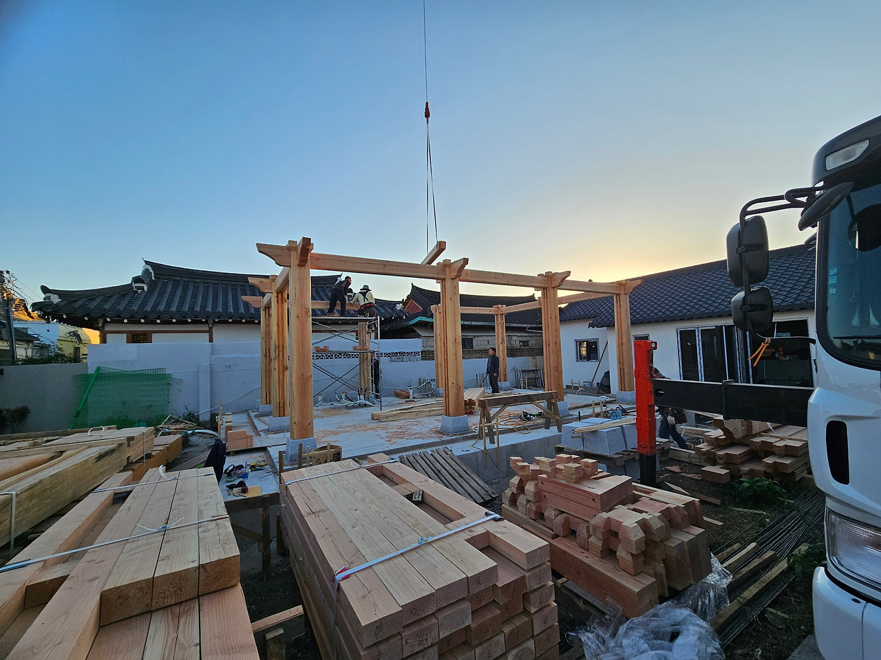 지붕 무게만도 수십 톤, 크레인 작업이 필수입니다.