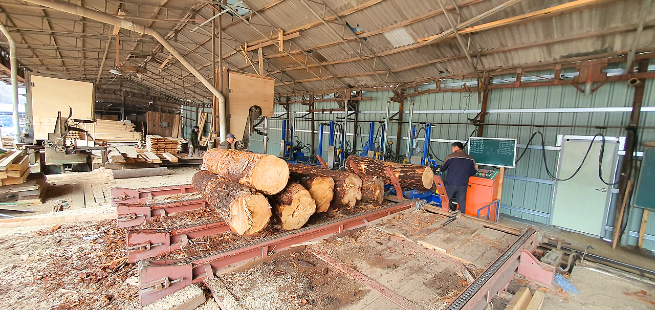 제재소에서 나무를 골라 치수에 맞게 재단 합니다.
