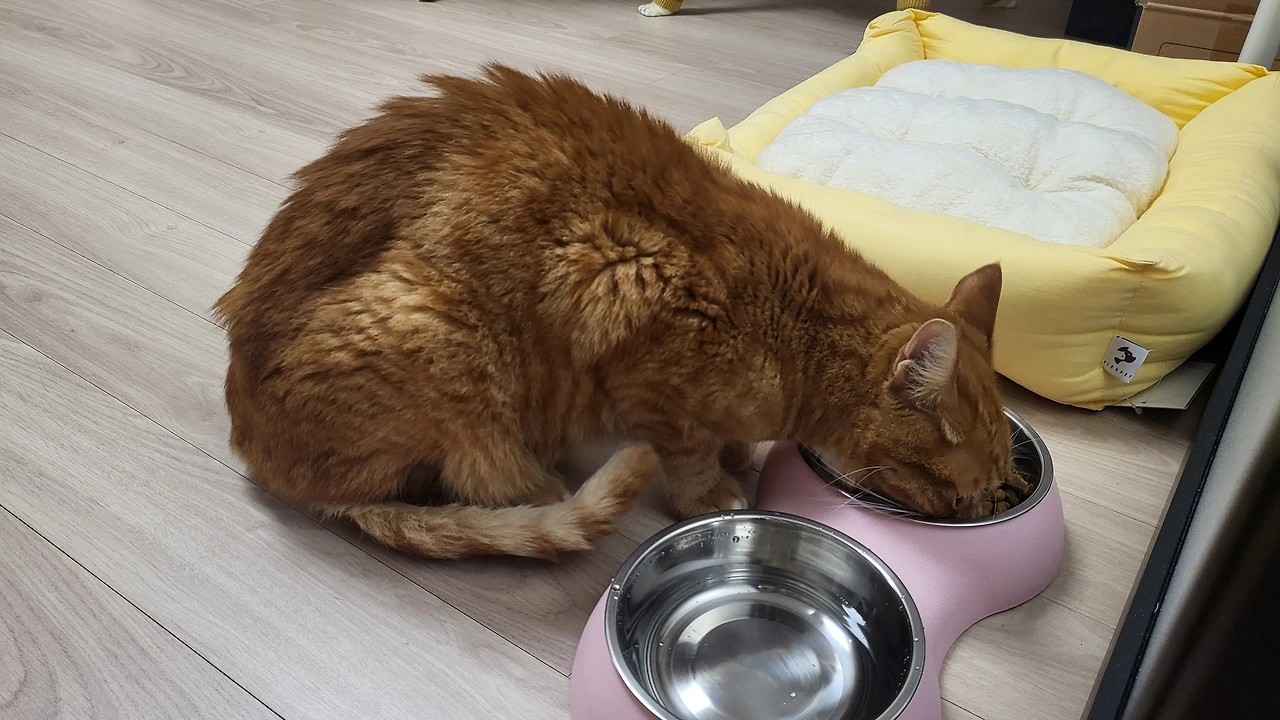 당돌한 호랑이는 열심히 집안을 탐색했고, 사료를 먹고 물을 마셨다.