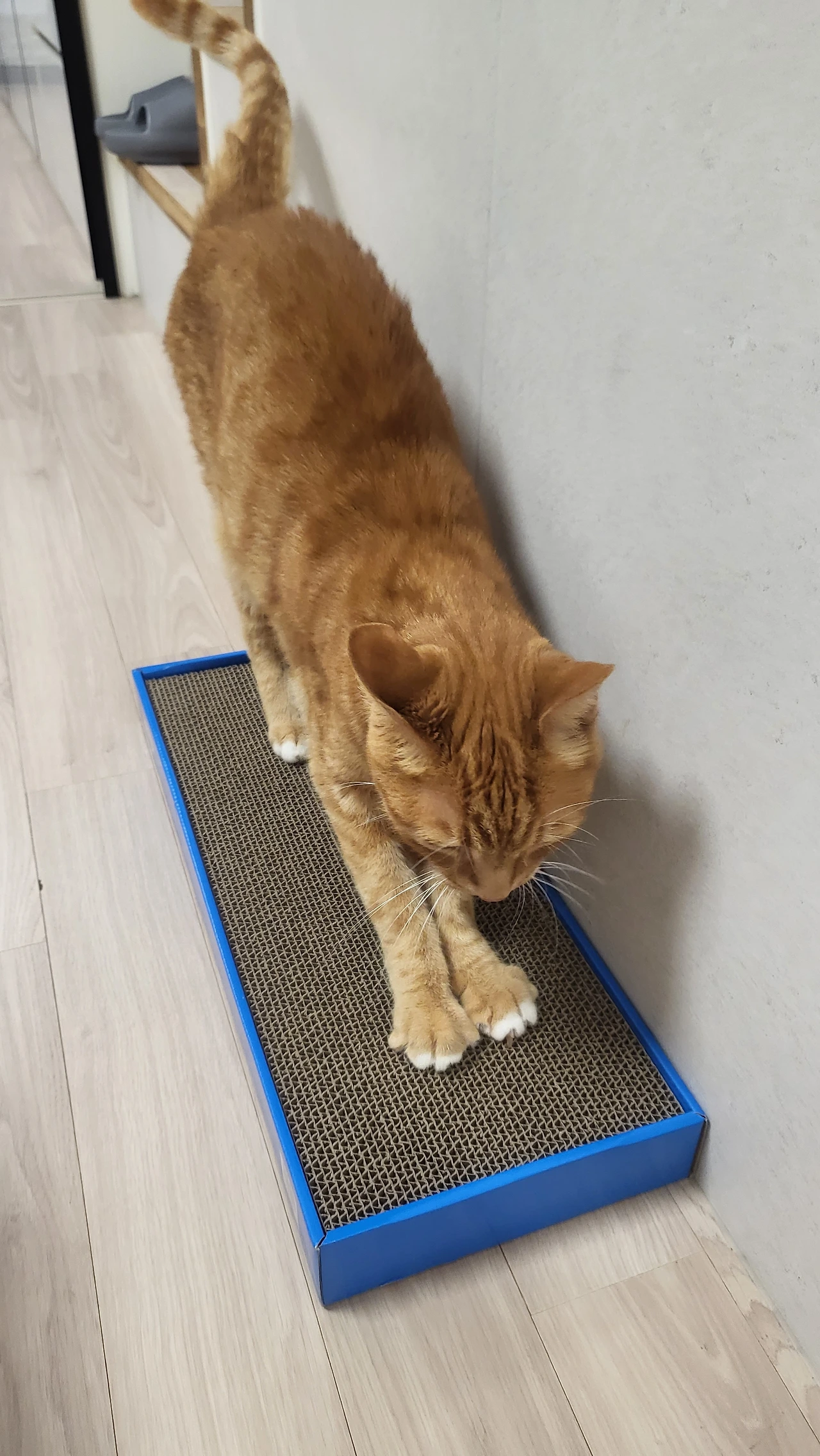 하지만 첫 날의 호랑이는 이 작은 스크래처로도 행복해보였다.