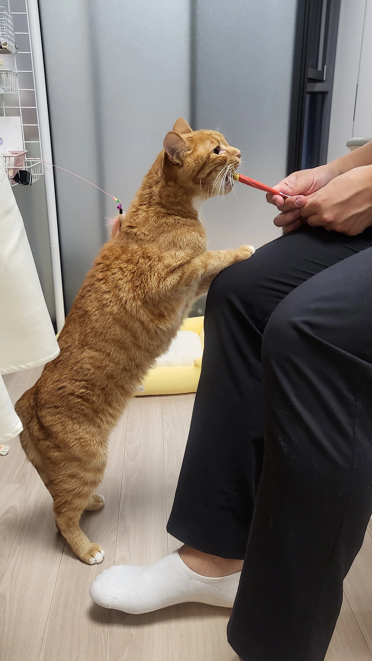 츄르가 있는 곳은 기가막히게 알고, 츄르가 있는 서랍 문을 열기만 해도 난리가 난다.