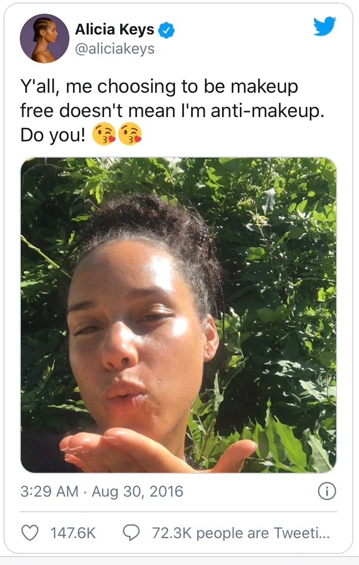 2016년, 알리샤 키스는 노 메이크업을 선언합니다.