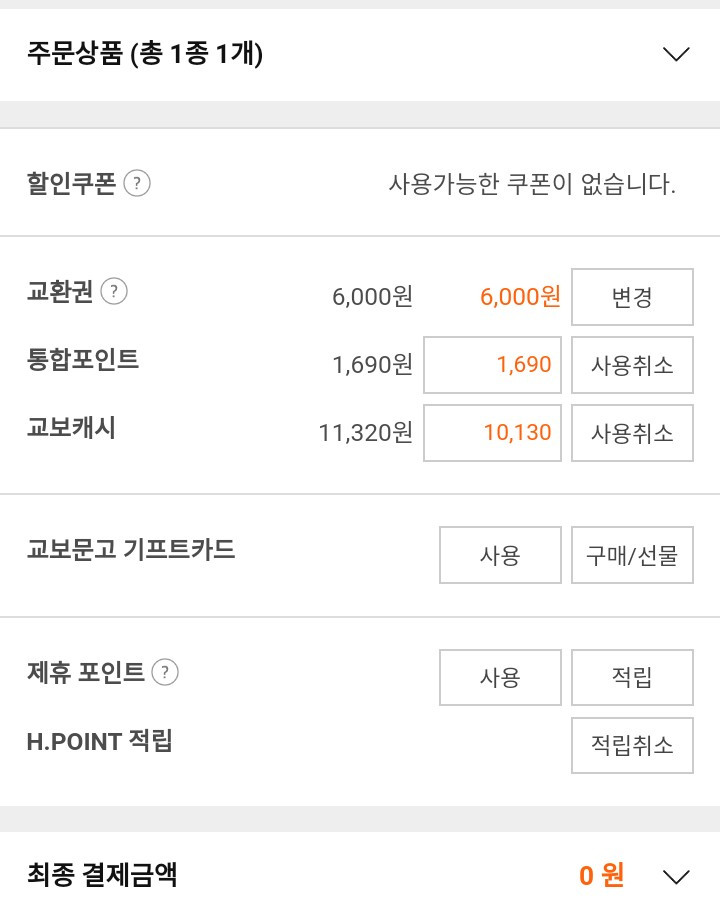 따끈따끈한 신간을 한번 주문해보자. 기본적으로 무료배송보다는바로드림을 좋아하는 나는 조금은 번거로울 수는 있지만 적용되는 쿠폰이 많고, 집에 들어가는 길에 들러서 다른 책도 둘러볼 겸 선호하는 방법이다. 서점에 가면 마음이 편안해지고 힐링이 되는 기분은 모든 졸꾸러기라면 느끼는 동일한 감정일 것이다. 오늘은 각종 쿠폰을 모으고 모아서 6,000원 할인을 받고, 포인트 1,690원을 사용했으니 10,130원만 결제하면 된다.