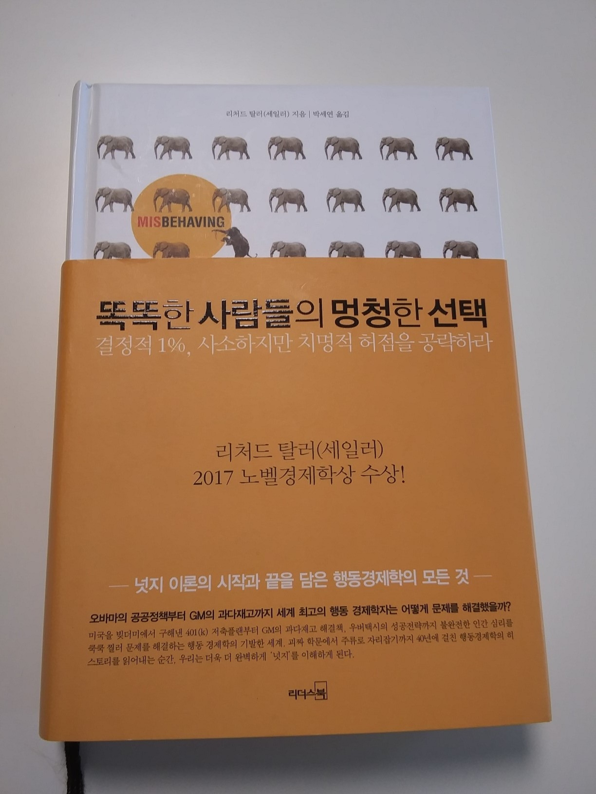 사람은 감정의 동물이다. 우리는 이콘이 아니기에 예측 가능한 실수를 종종 아니 자주 저지른다. 사람들에게 도움을 주는 방식으로 사람들의 선택에 영향을 미치는 행동경제학이 필요 없는 사람은 없을 것이다. 사람의 심리와 경제적 원리를 잘 조합해서 이해한다면 더 이상 멍청한 선택을 하지 않고, 사소한 것에만 목숨을 걸지 않게 될 것이다. 똑똑한 삶을 위해 꼭 필요한 행동경제학을 맛볼 수 있는 「똑똑한 사람들의 멍청한 선택」에는 갖가지 법칙들이 나오고 경제학 용어들이 나와서 나에게는 조금 어려웠다. 하지만 지은이가 무엇을 얘기하는지는 감을 잡았다. 조금 더 행동경제학에 대해 공부를 하고 난 후 다시 한번 읽어봐야 할 책으로 킵해놔야겠다. 다수를 무조건 따르지 말고, 다른 것을 두려워하지 말고, 똑똑한 소비자가 되어보자!