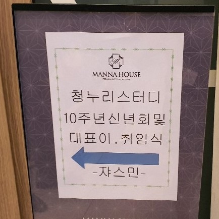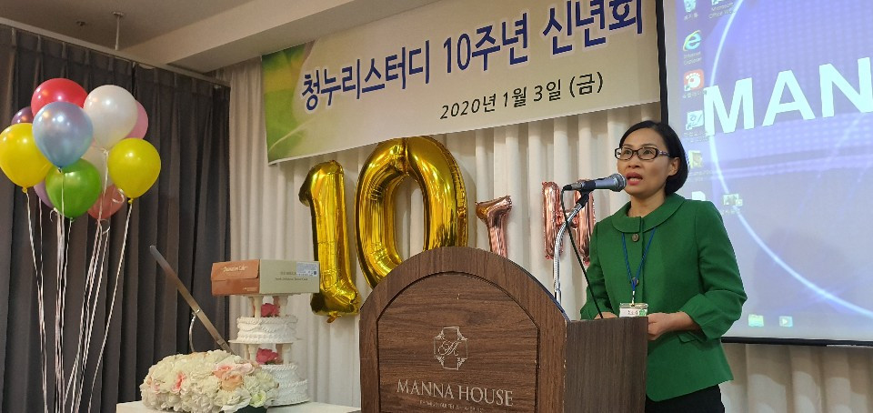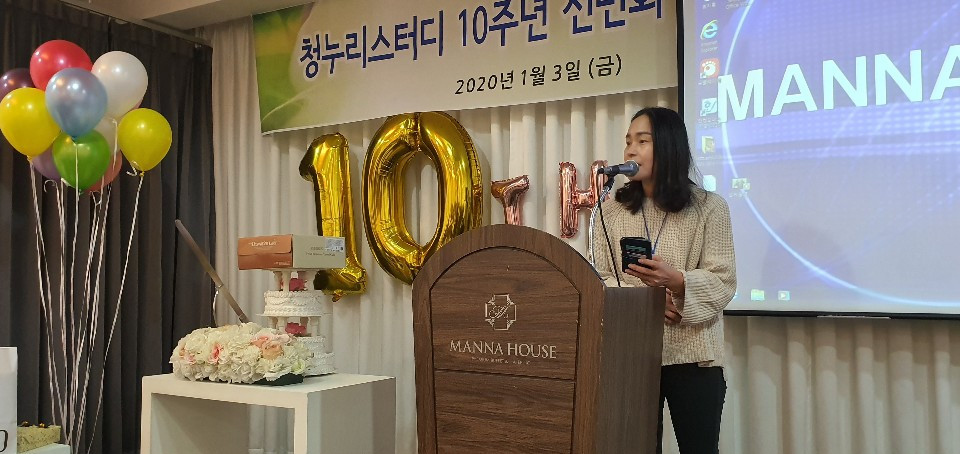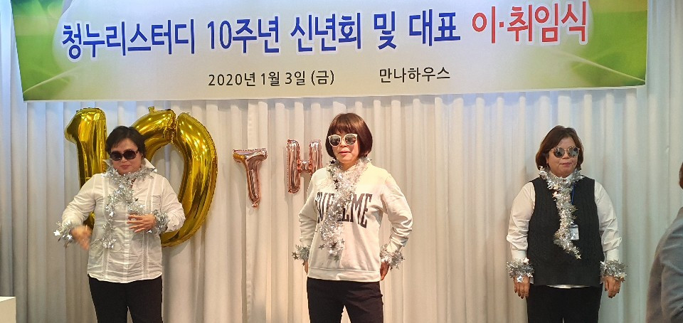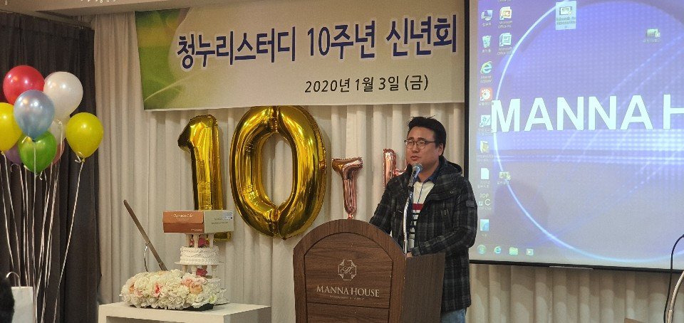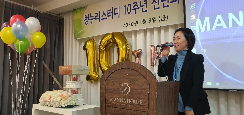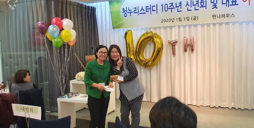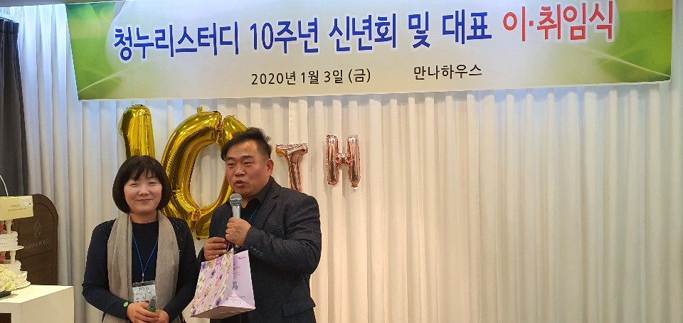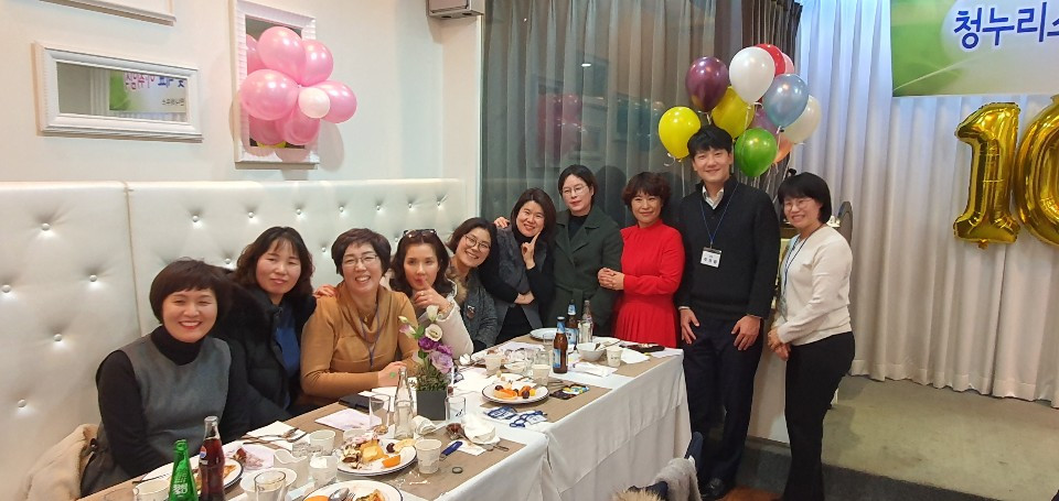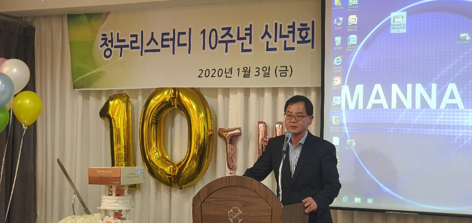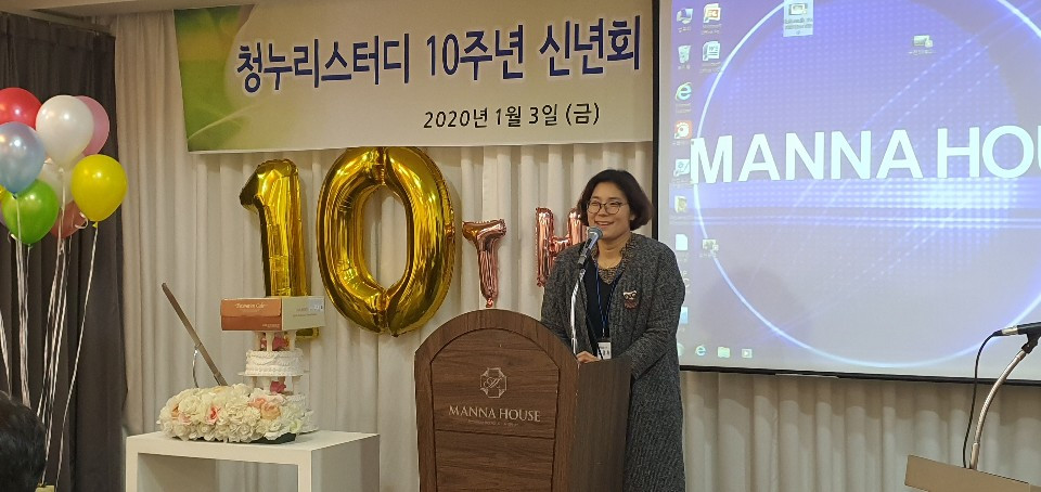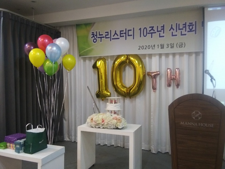 2019년 1월 3일 금요일 스터디 10주년을 맞이하여 교수님과 1기부터 10기까지 오랜만에 모두가 모여 신년회를 함께했습니다. 누구의 회갑이나, 돌잔치가 아니라"청누리 스터디의 10주년"입니다. 사회는 아나운서 학원 출신의 이경숙 부대표님께서 맡아주셨습니다^^