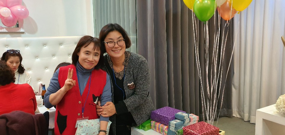 주경필 교수님과 이경화 선배님 그리고 강효정 신임 대표님께서 케이크 컷팅을 해주셨고, 2019년도에 수고하신 송경숙 전대표님과 이경숙 전부대표님 너무 수고 많으셨고, 2020년을 이끌고 나가실 강효정 대표님께 파이팅을 외쳐드립니다^^!!
