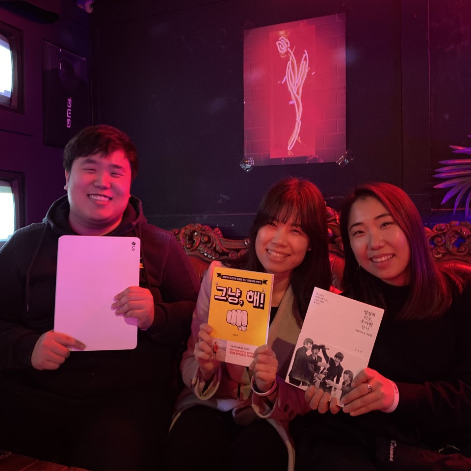 클럽에도 가본 적이 없는 나의 눈이 휘둥그레해지는 이곳에 가서 준형님이 주신 책 인증 놀이를 하고, 치킨을 먹고 있는데 쌤쌤님이 오셨고, 한참 살아온 이야기와 지난 HANDAL을 하면서 느낀 것 등을 이야기했는데 갑자기 우아빈님과 곧이어 강코치님까지 합류하게 되었다. 현재 우아빈님과 강코치님은 한달쓰기 까꿍팀이고, 대원님과 나는 한달쓰기 요쏘퍼니팀이며, 닭둘기님은 머니팀이다. 이렇게 모인 7명은 갑자기 바로 옆 빨래방 안에 위치한 코인 노래방에 방문을 하게 되는데 너무 웃긴 건 코로나 때문에 다른 사람들은 모임을 기피한다는데 우리는 그 좁은 코인 노래방에서 3명씩 마주 보고 앉고 1명은 서서 노래를 부르기 시작했다. 사실 노래방을 안 가본 지도 오래되었지만 코인 노래방을 처음 가봤다 (아 물론 지나가면서 봤다. 하지만 직접 들어간 것은 처음 ㅋㅋ)