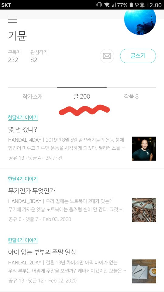 비슷한 시기인 2019년 8월 2일에 시작한 브런치도 6개월이 조금 넘었는데어느덧 200개를 넘어 이 글은 이 글은 202번째가 되었다.