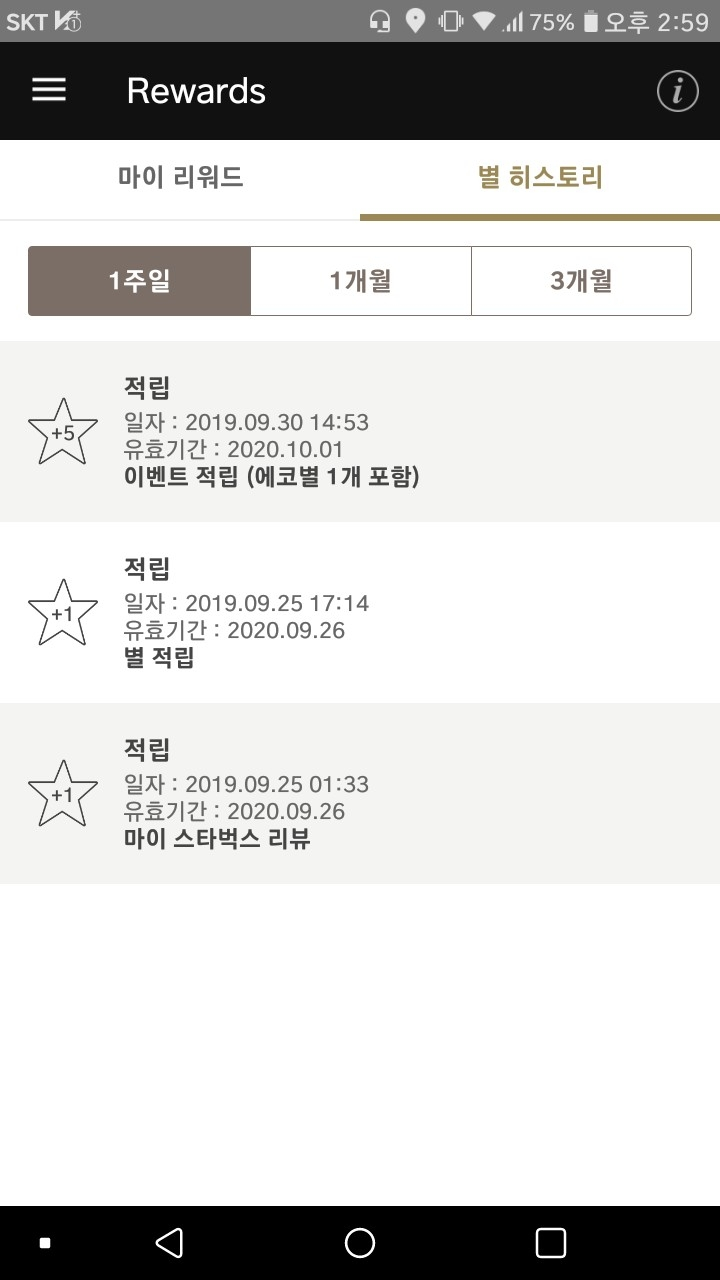 사이렌 오더로 주문해서 1개 더, 텀블러를 이용하니 에코 별 1개를 더해서