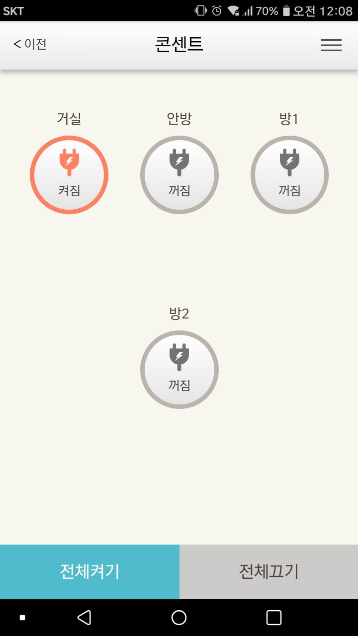 조명, 난방, 가스밸브, 콘센트, 방범등을 조절하는 어플이다.