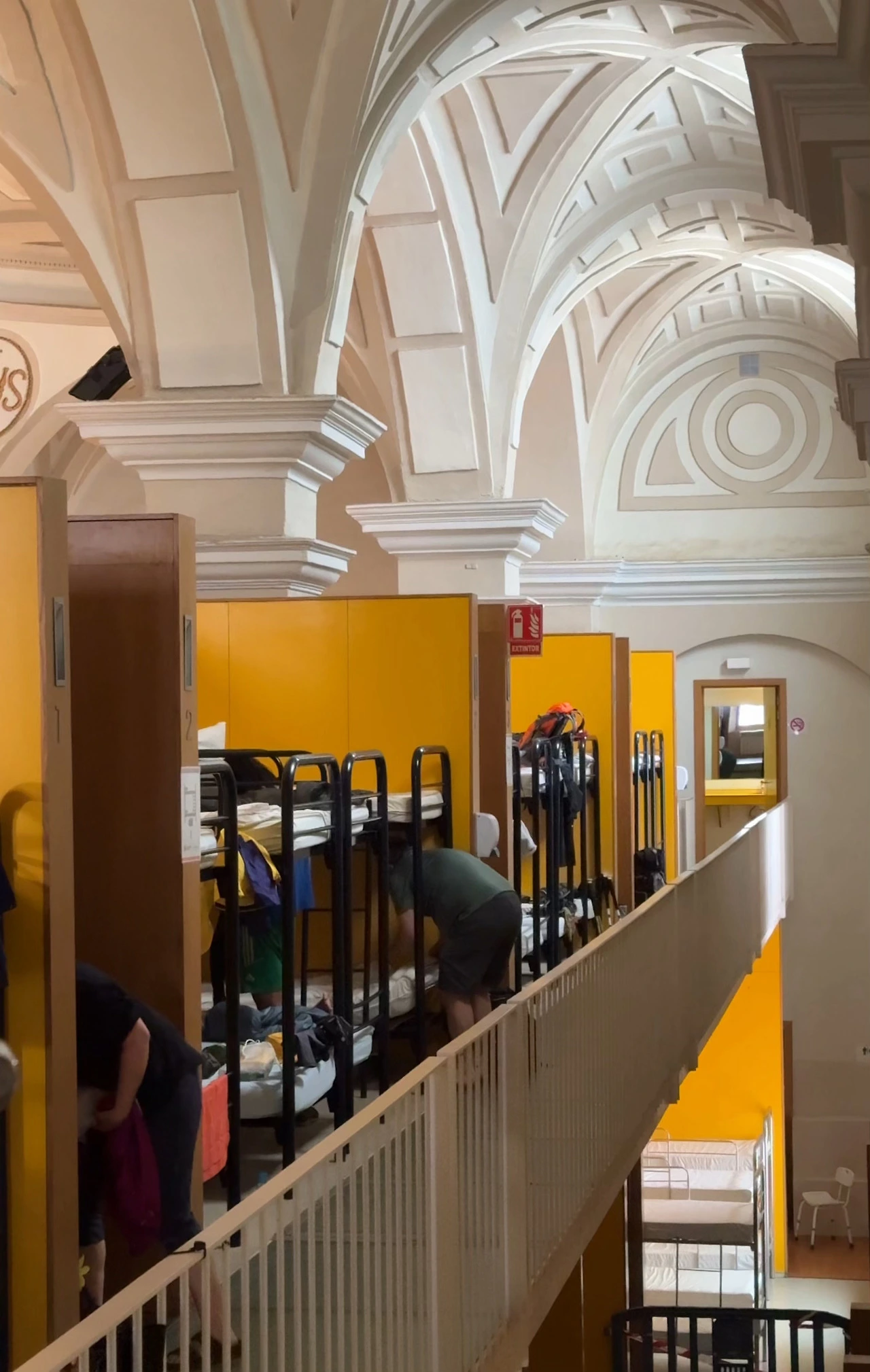 알베르게는 도시 성곽 안쪽 구시가지에 자리 잡고 있었다. 성당 가운데를 이층으로 개조해 많은 사람이 쉬어 갈 수 있도록 했다. 돔으로 된 천장은 전체가 뚫려있어 말소리와 각종 소음의 울림통이 되어 주었다. 그래서 조금 소란스러운 부분이 있었다. 이곳은 샤워장과 화장실이 남녀공용이었다. 처음 마주하는 광경에 다들 조심스러웠다. 특히 남자들이 문 앞에서 머뭇거리는 것을 자주 목격하게 된다. 안을 들여다보면 샤워타월 하나 걸치고 돌아다니는 여자도 있고, 아예 실오라기 하나 걸치지 않은 사람을 봤다는 목격담이 난무했다.