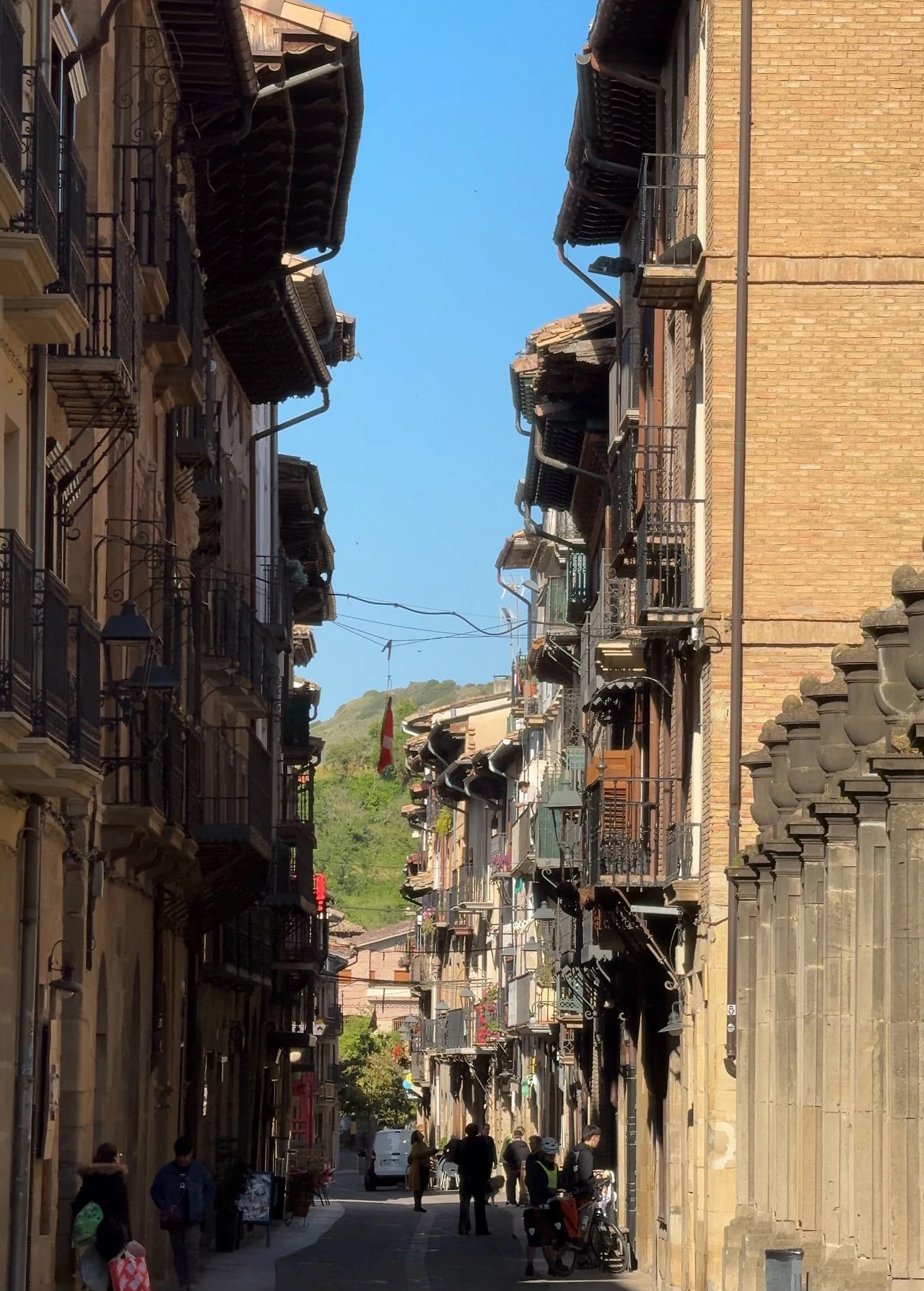 몸이 적응하는 건지 무릎 보호대 덕분인지 통증은 이제 사라졌다. 그래도 무리하지 않고 며칠간은 조심해야겠다. 오늘 한 번의 고비가 있었지만, 다행히 길이 평탄한 편이었다. 고도계를 확인해 보면 내일까지는 계속 평지임을 알 수 있었다. 출발한 지 두 시간쯤 지났을 때 푸엔테 라 레이나를 지났다. 팜플로나와 분위기나 모습이 매우 비슷했다. 옛 모습이 잘 보존되어 있어 마치 유적지를 지나는 느낌이었다. 하긴 이 길이 유네스코 문화유산에 등재되어 있으니, 문화재는 맞다.