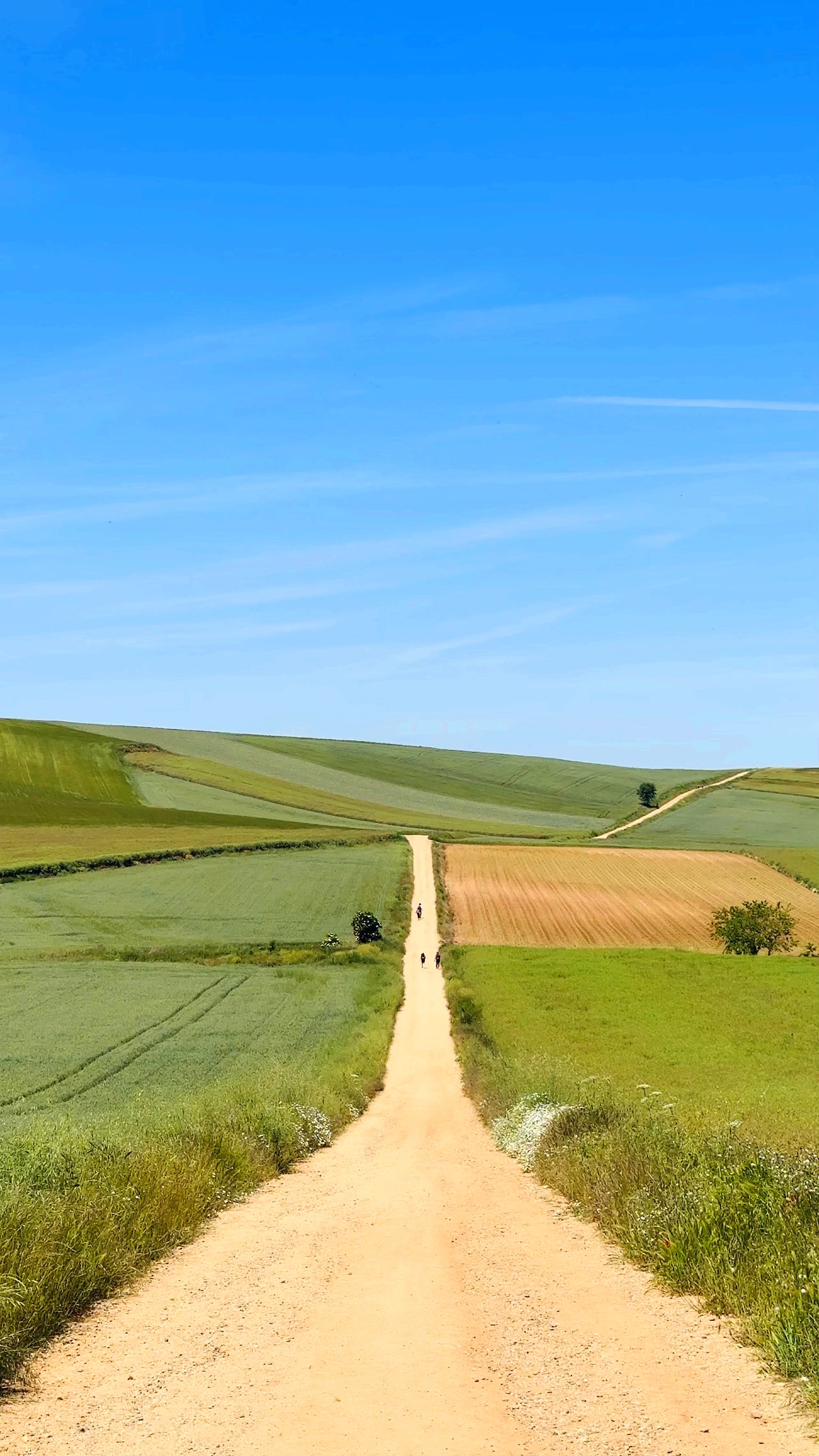 나는 기독교인이지만, 처음부터 종교적인 의미로 이 길을 걷고자 한 건 아니었다. 오래전 우연히 이 길을 알게 됐고 도전해 보고 싶다는 막연한 생각을 했을 뿐이다. 나의 남은 순례길 여정이 끝나기 전에 깨닫게 될지 확신할 수 없었지만, 내가 왜 이 길을 걷고 있는지 알고 싶다는 생각을 했다. 그러는 사이 내 눈앞에 그림 같은 풍경이 펼쳐지며 복잡한 생각을 한순간에 떨쳐냈다. 사진으로 보던 그곳이다. 그래 일단 내 눈에, 내 마음속에 담자. 건조한 바람, 태양의 열기, 푸른 평원, 파란 하늘, 어느 것 하나 모자람이 없었다.