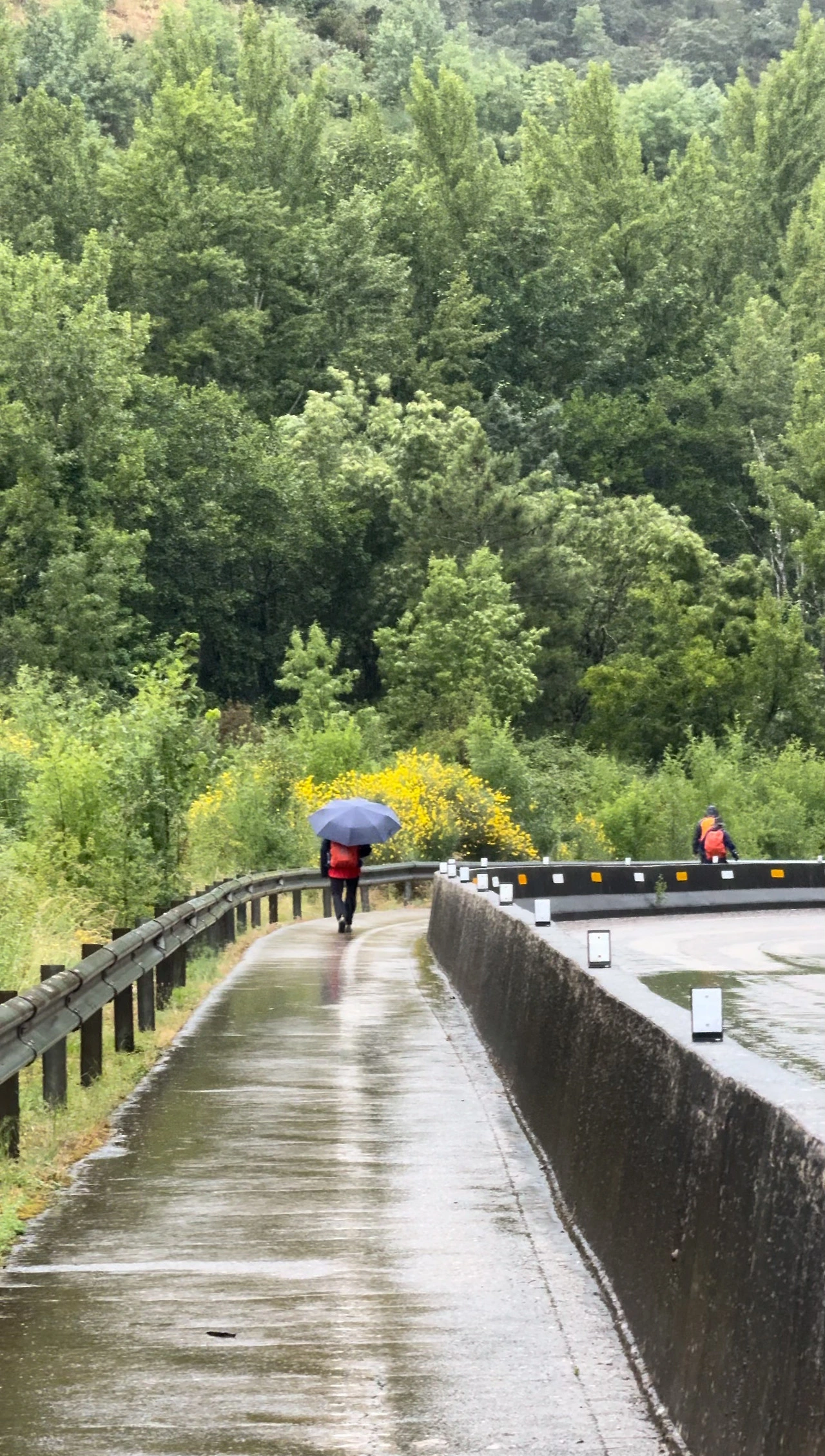 비바람 때문에 속도가 나지 않았다. 두 시간쯤 걸었을 무렵 마을이 나타났다. 이곳에서 커피를 마시며 잠시 쉬고 있는데, 느닷없이 구름이 걷히더니 해가 났다. 다들 우의를 벗어 물기를 탁탁 털어 배낭 뒤에 걸쳤다. 나도 판초 우의를 벗어 물기를 털어내고 건너편 난간에 널어놨다. 오늘 가는 ‘라 라구나’는 ‘비아프랑카’에서 800m를 더 올라가야 하는, 해발 1,300m에 위치한 고지대였다. 비가 그쳐서 다행이었다.