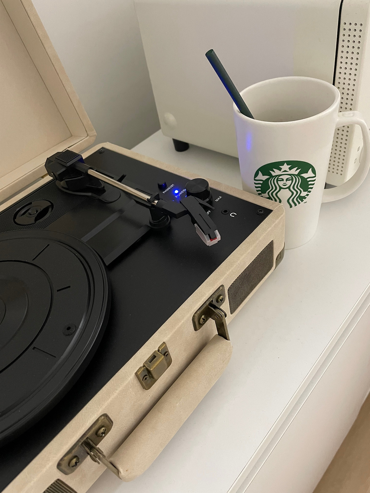 아직 꺼지지 않은 커피머신을
