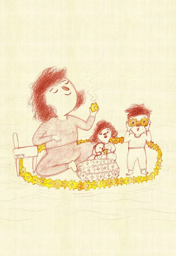 "아드님~ 그 망원경으로 아빠가 깨어났는지 좀 봐줄래요?"