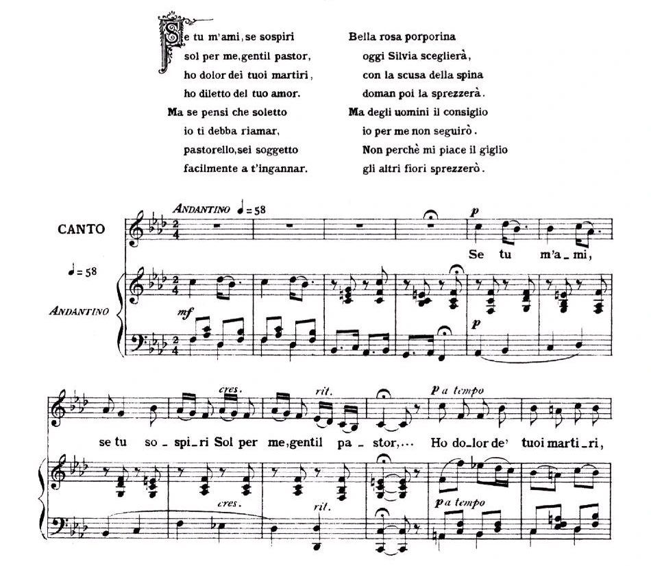 18세기에 태어나 26살의 짧은 생을 살았던 천재 음악가 죠반니 페르골레지Giovanni B. Pergolesi의 '만일 나를 사랑한다면Se tu ma'mi'은 목동과 사랑의 대화를 하는 여인 실비아의 짧은 이야기다.