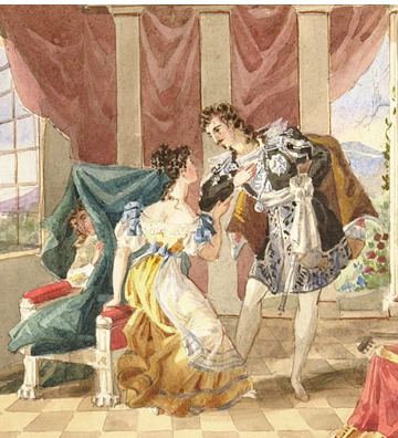 위의 한 줄짜리 문장을 백작부인이 부르면 수잔나가 받아 적는다.