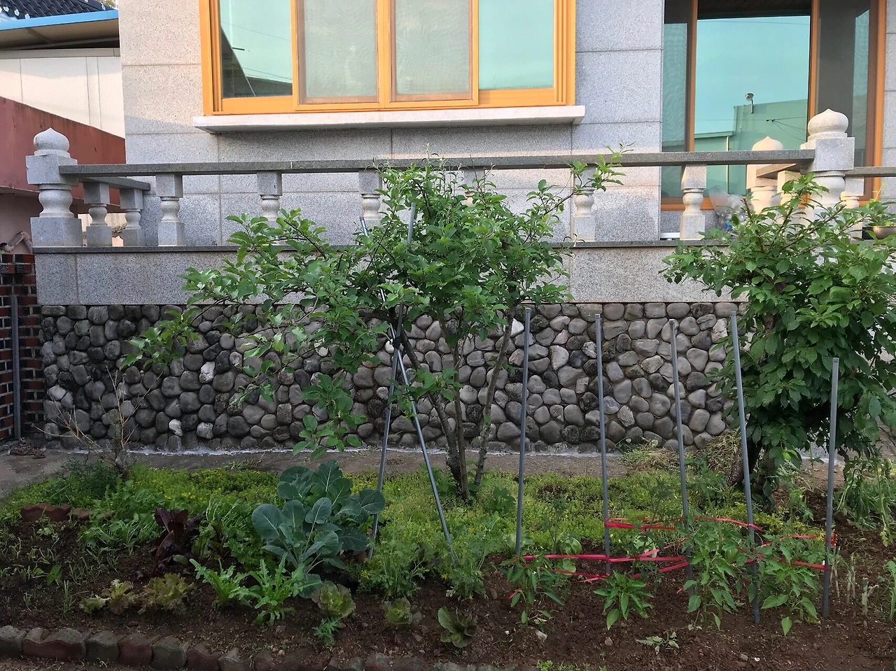 나는 실용적인 쌈채소, 토마토, 고추를 심었는데 세왕이는 갑자기 블루베리에 꽂혔다. 무려 10주를 샀다. 묘목1만, 화분5천, 상토8천...x10 =23만원. 이 정도면 사 먹는 게 싸지 싶다. 그러더니 블루베리를 잘 키워야 한다면서 책 한 권 두께의 프린트를 해서 정독한다. 어느 날 ‘어! 어~’ 거리며 소리치길래 뛰어나가 보니 ‘우리 아기가 좀 큰 것 같아’라고 말한다. 이쯤 되니 시골생활에 잘 적응하는 게 맞는지 헷갈린다. 가끔 블루베리랑 속닥속닥 이야기도 하고 알알이 차오를 무렵에는 파수꾼을 자처하며 매일 새들이 오나 보초를 서느라 바쁘다. 정성 하나는 찐 농사꾼!