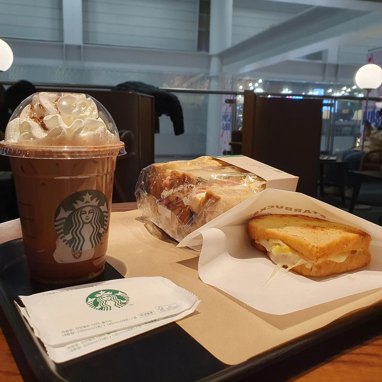 음식을 선택할 때도 마찬가지였다. 혼자니까 무엇이든 내 맘대로 먹을 수 있을 것 같았다. 푸드코트에 가 보니 줄은 한참 서 있고 자리를 먼저 잡아둬야 하는 상황에서 내 케리어만 좌석에 덩그러니 놔두고 줄을 서자니 한참 불안했다. 전 같으면 남편과 아이들이 자리를 잡고 나는 줄을 섰을 텐데 혼자서는 그게 어려웠다. 결국 푸드코트에서 발을 돌렸다. 그리고 찾은 곳은 인천공항 스타벅스 북카페. 평소와 다르게 시킨 것은 음료의 종류 정도였다. 달달한 초코가 먹고 싶어서 전과 다르게 초코 음료를 시켰다.