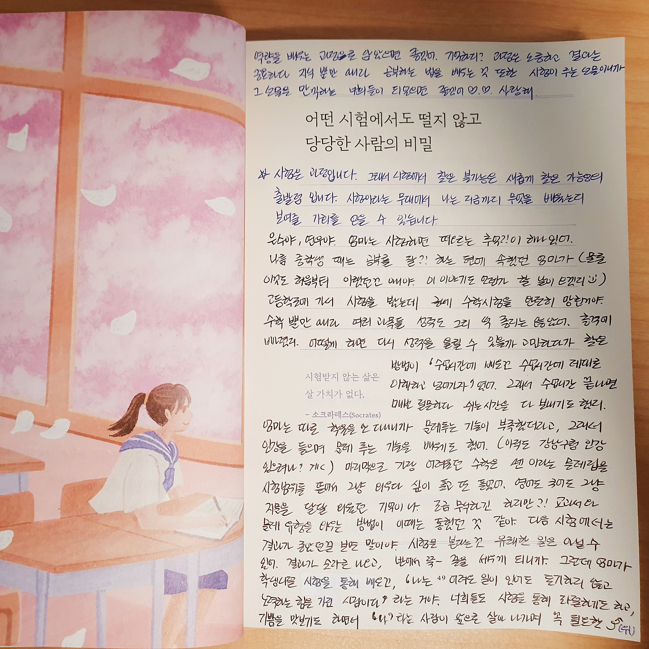 엄마가 '왕창 틀려버릴 거야!'라고 말해도 된다는 건, 그만큼 네가 리코더 연습을 열심히 했기 때문이야. 연습을 안 하면 진짜 왕창 틀려버리겠지만, 너는 네가 할 수 있는 최선을 다 해보았잖아. 그러면 시험을 보는 그 순간만큼은, 그동안 애써오고 노력해 온 나를 믿어줄 수 있어야 해. 그 믿음을 가지는데 '유머'가 분명 큰 힘이 될 거란다.